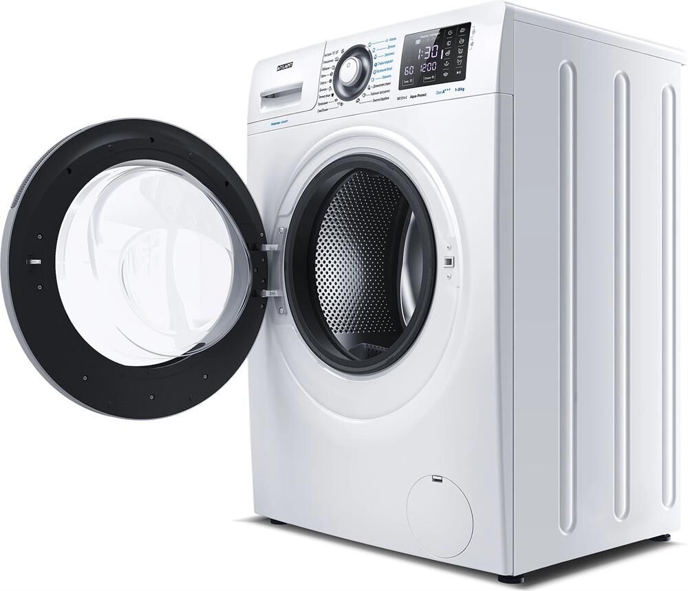Размер без упаковки (ВхШxГ) 846x596x481 мм. с технологией обработки паром, загрузка до 8 кг, отжим 1200 об/мин, класс A+++, 18 программ. Экономия ресурсов (воды/электроэнергии). Разборный бак из ударопрочного материала. Очистка барабана. Дозагрузка белья. Функция «Защита от детей». Класс стирки A. Класс отжима B. Количество программ 18. Количество дополнительных функций 14. Самодиагностика. Система защиты от протечек AQUA-PROTECT