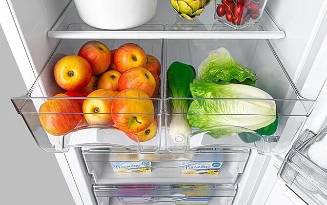 Габариты (ВхШхГ) 205х60х63см. Отдельностоящий. 2-камерный, морзилка снизу. Общий объем 364л, холод. камеры-225л, морозил. камеры-139л. 1 компрессор. Механический терморегулятор Ударопрочное стекло Класс энергопотребления А. Уровень шума 40 дБА Климатический класс N Перенавешиваемые двери Тип ручки ручка-скоба Номинальное напряжение и частота 220-230 В ~ 50 Гц Годовое энергопотребление 390 квт.ч Хладагент R600a Цвет белый.