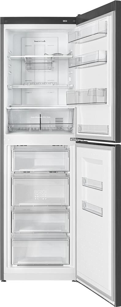 Размер без упаковки (ВхШxГ) 1968x595x660 мм * Размер в упаковке (ВхШxГ) 1990x665x717 мм * Система охлаждения FULL NO FROST * Цвет корпуса черный металлик * Полный полезный объeм 312 л. Общий объем 356 л. Полезный объем холодильной камеры 187 л. Полезный объем морозильной камеры 125 л * Класс энергоэффективности A+ * Количество компрессоров 1 шт * Уровень шума 42 дБА * Климатический класс SN, N, ST * Перенавешиваемые двери * Внутреннее LED освещение * Номинальное время повышения температуры продуктов от -18 °C до -9 °C при отключении электроэнергии 15 ч * Температура хранения замороженных продуктов в морозильной камере -18 °C Мощность замораживания при температуре окр. среды +25°С 10 кг/сутки Автоматическая система оттаивания морозильной камеры * Функция быстрого замораживания * Функция Охлаждения напитков * Количество отделений в морозильной камере 4 шт * Емкости SLIM SPACE 2 шт * Электронный блок управления и индикации * Тип ручки скрытая *