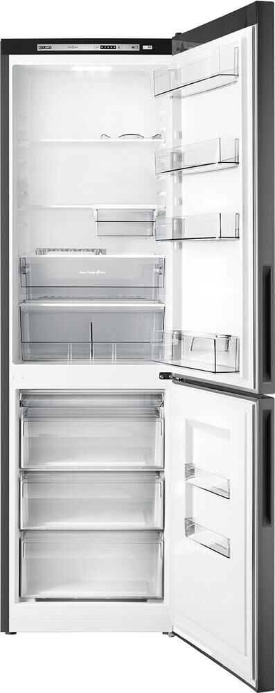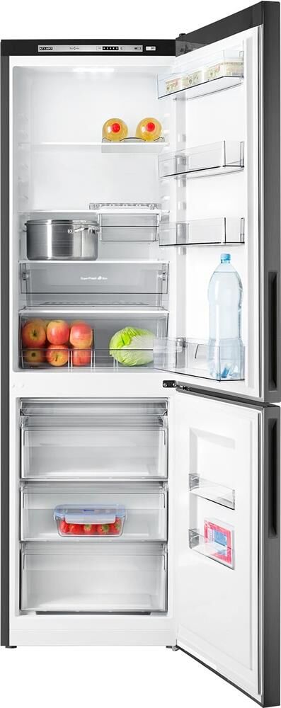 Двухкамерный холодильник; Габариты ШхГхВ, см: 59,5х62,9х196,8; Общий объём 361л; Вес: 72 кг; Цвет корпуса: Черный металлик; Класс энергоэффективности: А+; Уровень шума: 39 дБА; Климатический класс: N, ST; Перенавешиваемые двери; Внутреннее LED освещение; Электронный блок управления и индикации; Тип ручки: Скрытая; Полный полезный объeм: 347 л; Полезный объем холодильной камеры: 228л; Полезный объем морозильной камер: 119л; Температура хранения свежих продуктов: до 8 °C; Средняя температура хранения свежих продуктов: 4 °C; Общее количество полок: 5 шт; Отделение свежести («Super Fresh Box»); Полезный объем отделения свежести: 19 л; Номинальное время повышения температуры продуктов: от -18 °C до -9 °C при отключении электроэнергии 20 ч; Температура хранения замороженных продуктов в морозильной камере: -18 °C; Мощность замораживания при температуре окружающей среды +25°С: 5.5 кг/сутки; Функция быстрого замораживания.