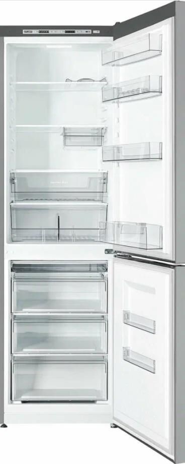 Двухкамерный холодильник; Размеры, см (ШхГхВ): 59,5х62,7х196,8; Общий объем, л: 361; Объем холодильной камеры, л: 229; Объем морозильной камеры, л: 132; Количество компрессоров: 2; Уровень шума: 40 дБА; Перенавешиваемые двери; Электронный блок управления и индикации; Тип ручки: скрытая; Хладагент: R600a; Размораживание: Капельная система; Количество дверей: 2; Количество полок: 4; Материал полок: Закаленное стекло; Количество полок на двери: 4; Автономное сохранение холода, ч 20