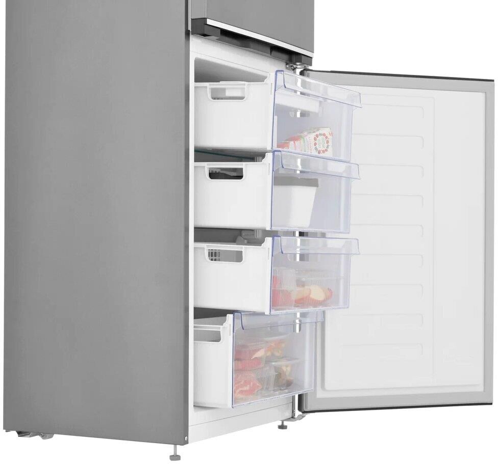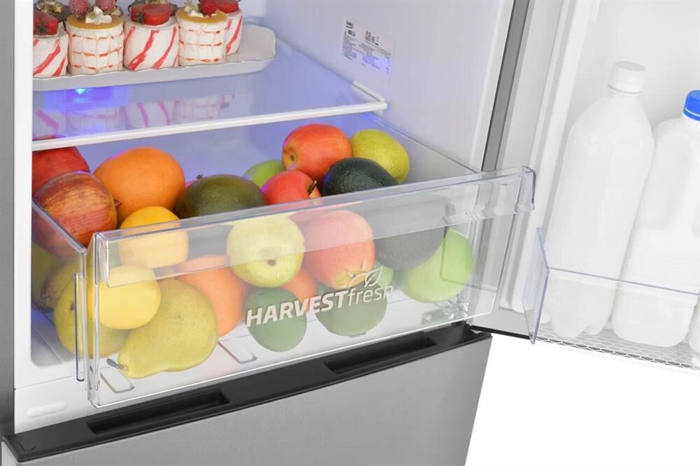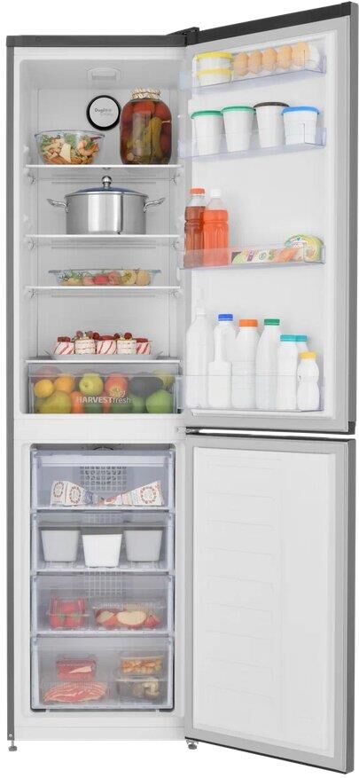 Размеры (ВхШхГ), см: 201х54х60. Общий объем 335 л. Полезный объем: хол. 200 л + мороз. 100 л. 1 компрессор (R600a). Электронное управление с дисплеем. Full No Frost, двухконтурная система охлаждения. Технология сохранения свежести Harvest Fresh. Режим "Отпуск". Энергопотребление в год: 306 кВт/ч. Уровень шума: 40 дБ. Время сохранения t°C без электричества: 18 ч. Перенавешиваемые двери. Встроенные ручки. ХОЛОД.ОТД: быстрое охлаждение Quick Cool, освещение LED, стеклянные полки (регулир., закален. стекло): 3, подставка для яиц, отделение для овощей и фруктов, полноразмерные полки на двери: 4. МОРОЗ.ОТД: быстрое замораживание Quick Freeze, 4 ящика, мощность замораживания: 7 кг/24 ч, лоток для льда, лоток для пельменей. Климатический класс SN-T. Класс энергетической эффективности: А+. Цвет: Серебристый