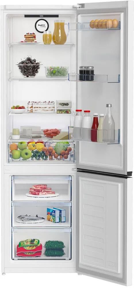 Размеры (ВхШхГ), см: 201×59,5×65. Общий объем брутто, 403 л. Общий полезный объем 357 л (ХОЛОД.ОТД: 257 + МОРОЗ.ОТД:100). 1 компрессор (R600a). Электронное управление с дисплеем. Двухконтурная система охлаждения No Frost Dual Cooling. Уровень шума, дБ 38. Энергопотребление, кВтч/год: 352. Время сохранения температуры без электричества ч.: 21. Перенавешиваемые двери. Встроенные ручки. Режим "Отпуск". Режим экономии энергии. ХОЛОД.ОТД: LED освещение. Количество ящиков: 1. Регулируемые полки из закаленного стекла: 3. Дверные полки, шт: 3. Подставка для яиц. МОРОЗ.ОТД: быстрое замораживание Quick Freeze, 3 отделения. Мощность замораживания, кг/24 ч: 6. Климатический класс SN-T. Класс энергоэффективности A+. Цвет: Белый