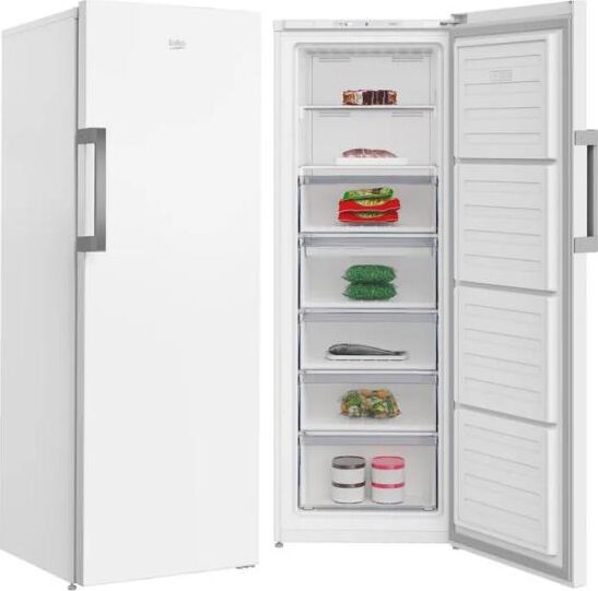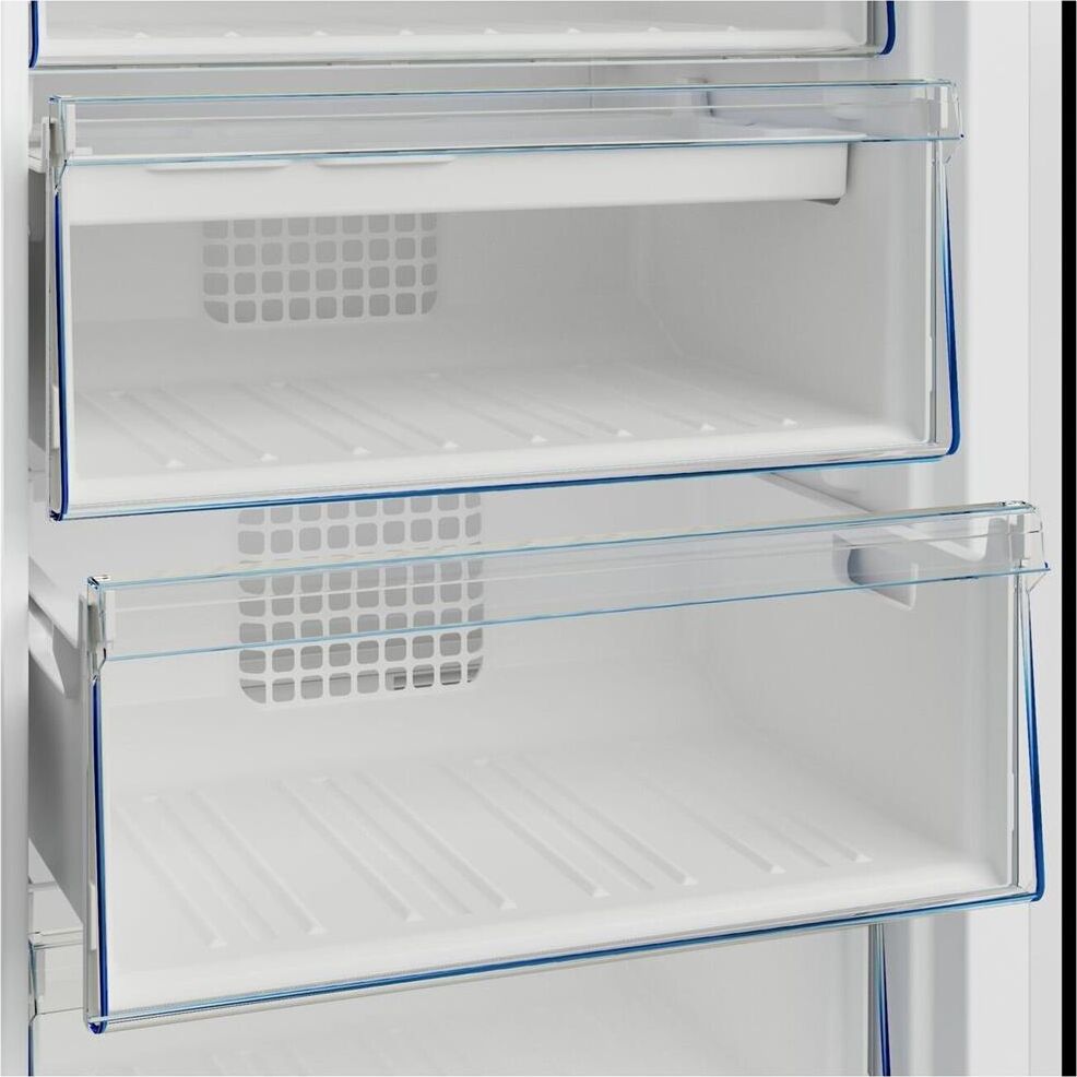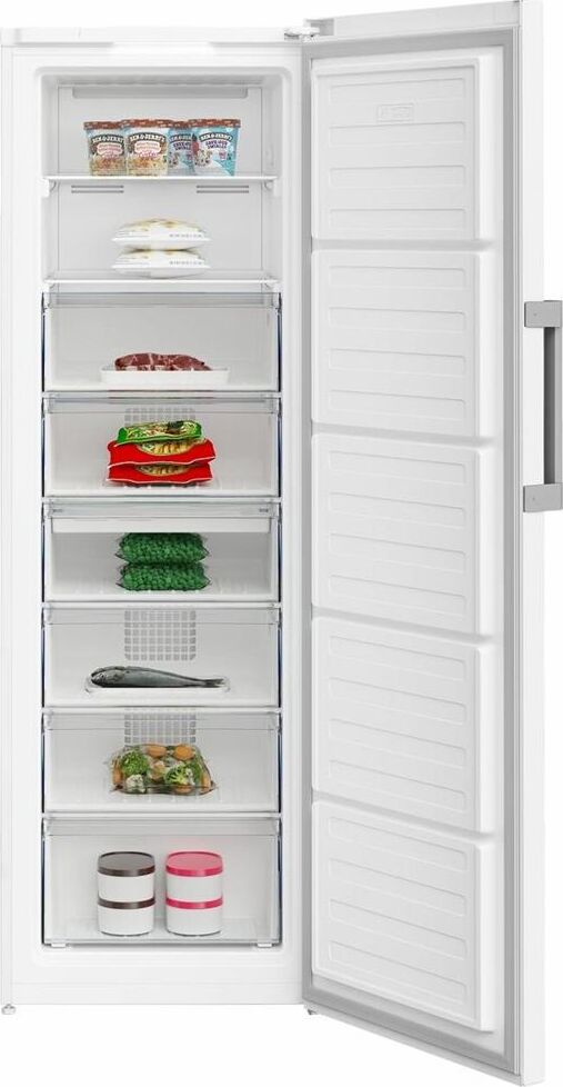 Вертикальный морозильник. Размеры (ВхШхГ), см: 185х59,5х65. Общий объем 312 л. Полезный объем 275 л. 1 компрессор (R600a). No Frost. Электронное управление, Электронное Display на двери. Авто.разморозка. Быстрая заморозка Quick Freeze. Технология FreezerGuard. Время сохранения t°C без электричества: 18 ч. Уровень шума: 39 дБ. Перенавешиваемая дверца. Внутреннее освещение. Внешняя ручка. Cигнал открытой двери, 6 ящиков, 7 полки, лоток для льда, лоток для пельменей. Мощность замораживания: 16 кг/24 ч. Климатический класс: SN-T. Класс энергетической эффективности: А+. Энергопотребление в год: 324 кВт/ч. Цвет: Белый