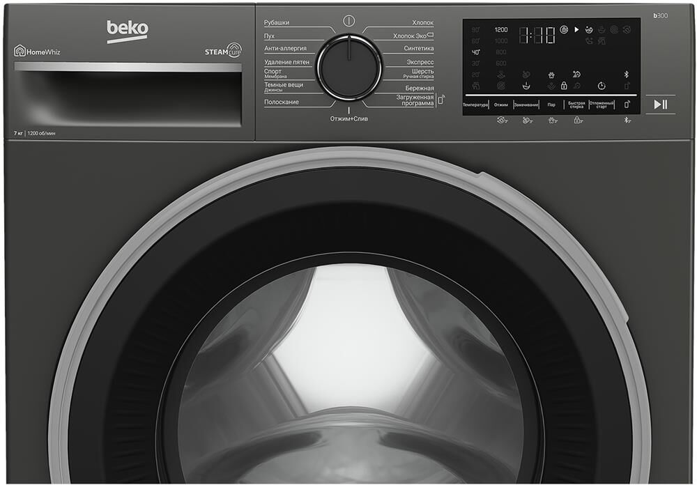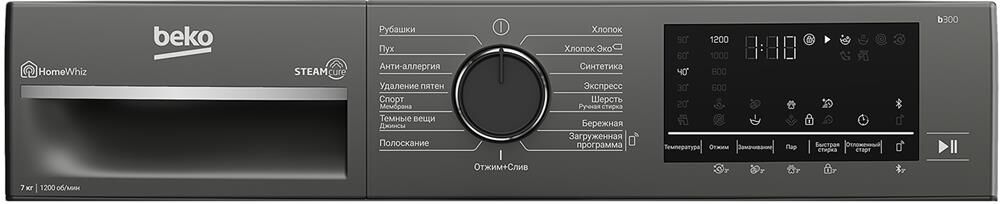 Размеры без упаковки (ВхШхГ), см — 84,5x60x49,6. Стиральная машина с технологией обработки паром SteamCure, максимальная загрузка 7 кг, скорость отжима 1200 об/мин. Инверторный мотор ProSmart. 15 программ: Мини 14′, Рубашки, Удаление пятен, Анти-аллергия, Загруженная программа). Цифровой дисплей. Удаленное управление HomeWhiz. Отложенный старт на 0-24 ч. Индикация хода выполнения программы. Плавная регулировка скорости отжима. Защита от детей. Дополнительные функции: Замачивание, Быстрая стирка, Удаление шерсти животных. Очистка барабана. Материал барабана: нержавеющая сталь, Объем барабана: 49л. Легко открывающийся люк, Автоматический контроль уровня воды. Класс: А. Размеры (ВхШхГ), см: 84,5x60x49,6. Вес: 62 кг, Цвет: антрацит + итальянское стекло, увеличенный диаметр люка: 34см