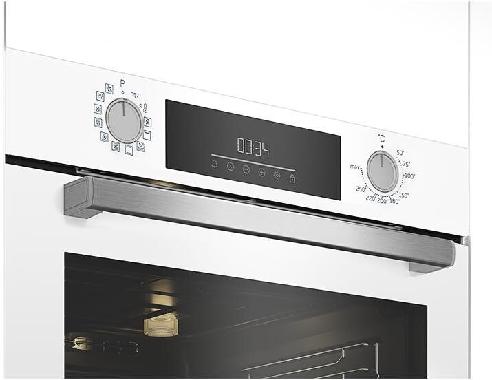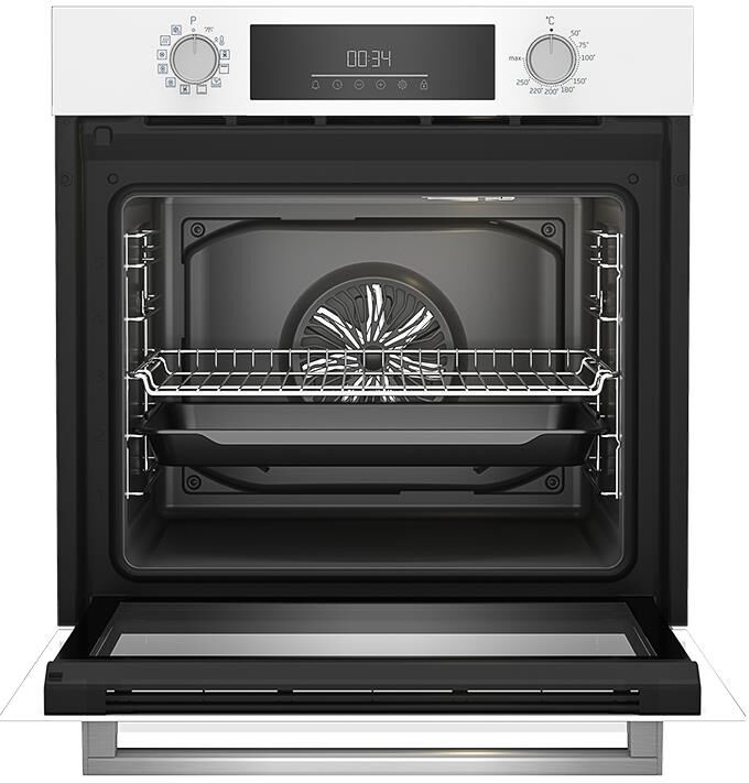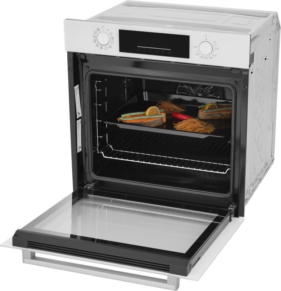 Размеры без упаковки (ВхШхГ), см — 59,5×59,4×56,7. Электрический духовой шкаф; 12 режимов; LED дисплей; утапливаемые поворотные переключатели; система очистки паром; металлические направляющие; объем — 72л; 2 стекла дверцы; 1 решетка; 1 противень; Цвет: Белый; Материал панели управления: Стекло