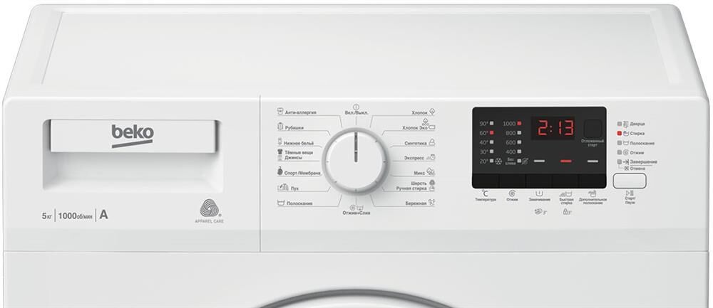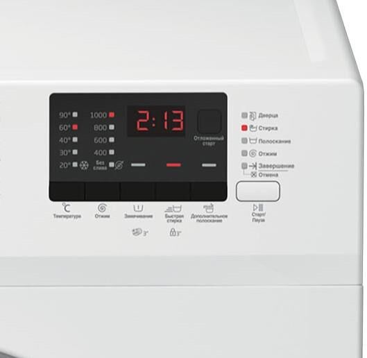 (ВхШхГ)84х60х41,5см. Цвет белый.Класс энергопотребления A -10%.Максимальная загрузка 5 кг.Максимальная скорость отжима 1000 об/мин.Класс отжима C.Расход воды 47.5 л.Уровень шума при стирке 60/78 дБ(А).Количество программ стирки 15.Цифровой дисплей.Отложенный старт 0-19 ч.Обратный отсчет/Индикация времени до конца цикла.Блокировка от случайного нажатия/Защита от детей. Электронный контроль дисбаланса. Вес 55 кг.