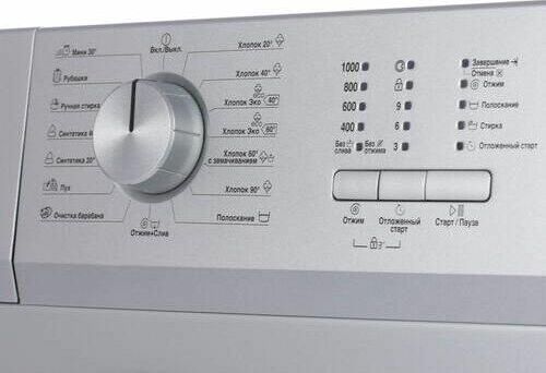 (ШхВхГ) 60 х 84 х 36.5 см.Цвет серебристый.Регулируемая скорость отжима400/600/800/1000 об/мин.Максимальная загрузка5 кг.Класс стиркиA.Класс отжимаC.Класс энергопотребления A-10%.Блокировка от случайного нажатия / Защита от детей; Автоматический контроль уровня воды; Электронный контроль дисбаланса; Защита от перелива; Контроль пенообразования.