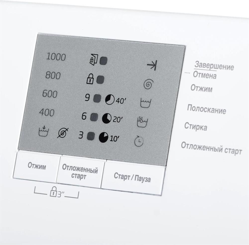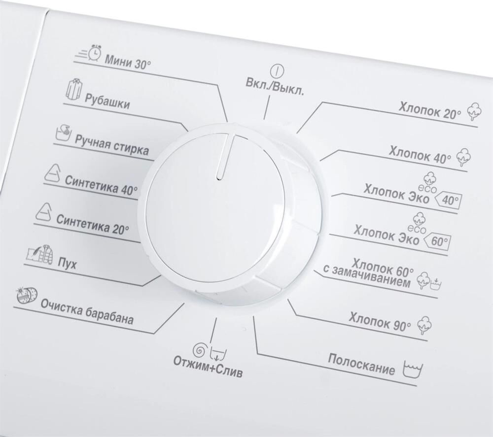 (ВхШхГ) 84х60х35см. Максимальная загрузка 5кг., скорость отжима 1000 об/мин. 15 программ. LED индикация, Материал барабана: нержавеющая сталь, Объем барабана: 31л, Легко открывающийся люк, Автоматический контроль уровня воды. Отложенный старт на 369 ч. Индикация хода выполнения программы. Плавная регулировка скорости отжима. Защита от детей, Электронный контроль дисбаланса. Класс А/А/С. Размеры Вес: 51кг, Цвет: белый, цвет люка: белый + итальянское стекло