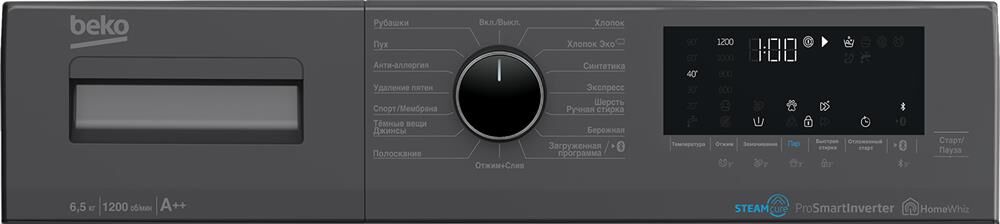 (ВхШхГ)84х60х40см.Цвет антрацит.Цвет люка премиальный люк (темное стекло) Электронное управление.Загрузка 6,5кг.Класс энергопотребления A -10%.Класс стирки A.Класс отжима B.Потребление электроэнергии, кВт/ч 1.1.Расход воды, л 48.Длительность программы, мин.270.Уровень шума при стирке, дБ 63.Уровень шума при отжиме, дБ 77.Напряжение, В 230.Потребляемая мощность, Вт 2200. Частота тока, Гц 50.Нагревательный элемент Hi-Tech с защитой от накипи. Блокировка от случайного нажатия.Автоматический контроль уровня воды. Электронный контроль дисбаланса.Защита от перелива.Контроль пенообразования. Программа для скачивания через Bluetooth.Пар SteamCure™