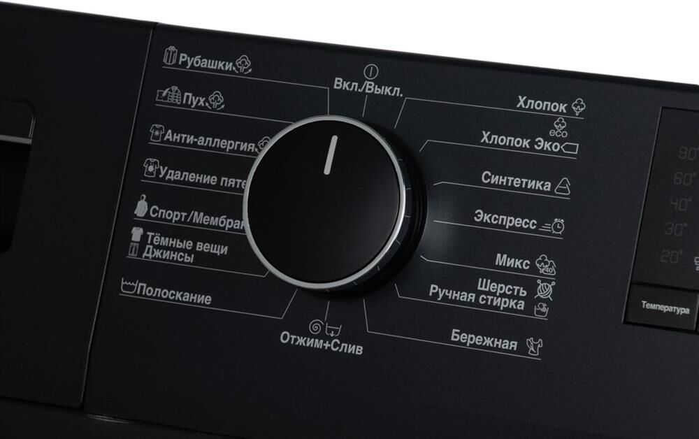 (ВхШхГ)88x65x51см.Цвет антрацит.Максимальная загрузка, кг 7 Количество программ 15 Максимальная скорость отжима, об./мин. 1200.Инверторный мотор ProSmart.Дисплей.Отложенный старт, ч 0-19.Класс энергопотребления A -20% Класс стирки A Класс отжима B Потребление электроэнергии, кВт/ч 1.05 Расход воды, л 52 Длительность программы, мин. 200 Уровень шума при стирке, дБ 63 Уровень шума при отжиме, дБ 77.Потребляемая мощность, Вт 2200.Нагревательный элемент Hi-Tech с защитой от накипи Блокировка от случайного нажатия.Автоматический контроль уровня воды.Электронный контроль дисбаланса. Защита от перелива.Контроль пенообразования.