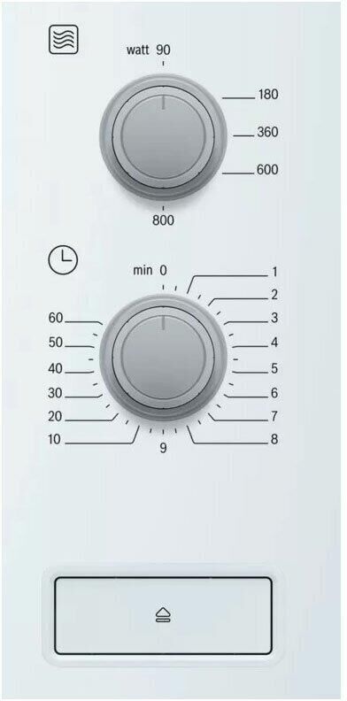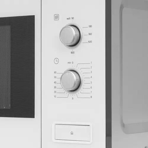 Объем: 20. Мощность микроволн: 800. Тип управления: механическое. Открывание дверцы: кнопка. Направление открытия дверцы: справа-налево. Внутреннее покрытие камеры: нержавеющая сталь. Диаметр поворотного стола: 255. Цвет корпуса: белый. Вес (нетто): 16.7. Габариты упаковки (ед) ДхШхВ: 0.655×0.385×0.435. Вес упаковки (ед): 14. Страна производства: Китай. Длина кабеля питания: 1.3. Внутреннее освещение: есть. Количество ступеней регулировки мощности: 5. Таймер на отключение, макс. время: 60. Гарантия: 12 мес.. Размеры (ШхВхГ): 59.4 х 38.2 х 31.7 см. Размеры ниши (ШхВхГ): 56 х 36.2 х 30 см. Размеры камеры (ШхВхГ): 30.8×20.1×28.2 см. Функции: блокировка от детей. Особенности управления: звуковой сигнал окончания приготовления, регулировка мощности. Режимы: автоматическая разморозка, соло. Мощность: 800 Вт. Объем: 20 л, покрытие нержавеющая сталь. Размеры (ШхВхГ): 59.4 х 38.2 х 31.7 см. Тип управления: механическое, открывание дверцы: кнопка. Режимы: автоматическая разморозка, соло. Функции: блокировка от детей