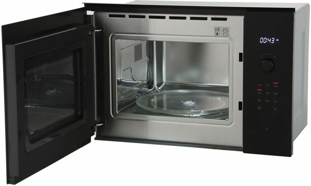 Объем: 25. Мощность микроволн: 900. Тип управления: комбинированное. Открывание дверцы: кнопка. Направление открытия дверцы: справа-налево. Внутреннее покрытие камеры: нержавеющая сталь. Диаметр поворотного стола: 315. Цвет корпуса: черный. Вес (нетто): 19. Габариты упаковки (ед) ДхШхВ: 0.66×0.441×0.44. Вес упаковки (ед): 12. Страна производства: Китай. Длина кабеля питания: 1.3. Внутреннее освещение: есть. Количество ступеней регулировки мощности: 5. Таймер на отключение, макс. время: 99. Гарантия: 12 мес.. Размеры (ШхВхГ): 59.4 х 38.2 х 38.8 см. Размеры ниши (ШхВхГ): 56 х 38 х 55 см. Размеры камеры (ШхВхГ): 32.8×20.8×36.9 см. Особенности управления: регулировка мощности. Функции: память рецептов. Дополнительные режимы: размораживание по весу. Режимы: автоматическая разморозка, соло. Особенности корпуса: дисплей, часы. Размеры (ШхВхГ): 59.4 х 38.2 х 38.8 см. Режимы: автоматическая разморозка, соло, размораживание по весу. Функции: память рецептов. Мощность: 900 Вт. Объем: 25 л, покрытие нержавеющая сталь. Ти