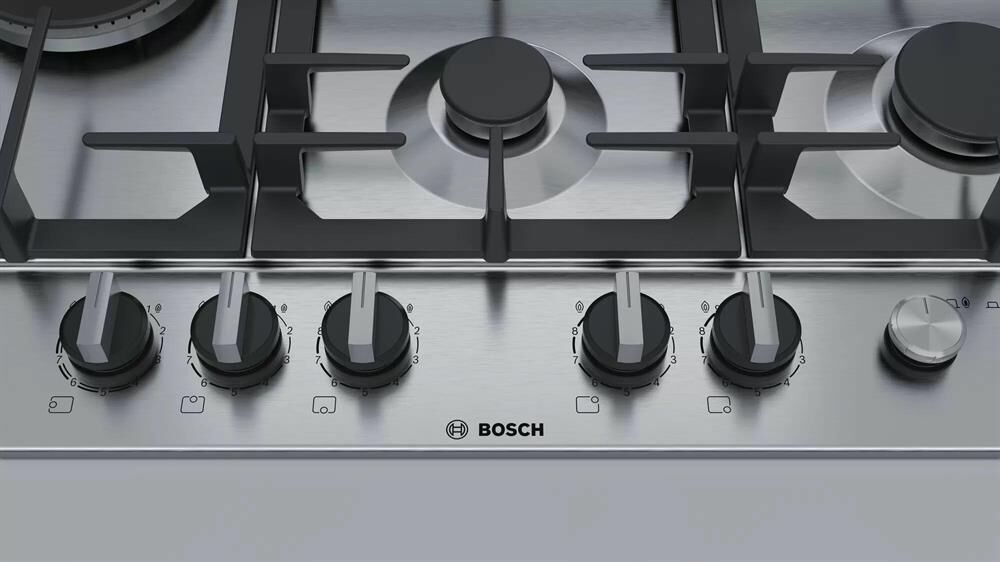 BOSCH Газовая варочная панель PCS7A5M90, 5 конфорок, нержавеющая сталь, серый