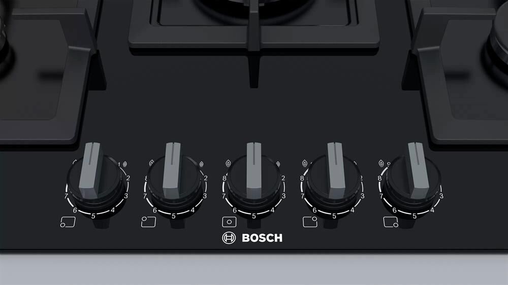 BOSCH Газовая варочная панель PPQ7A6B20, 5 конфорок, закаленное стекло, черный