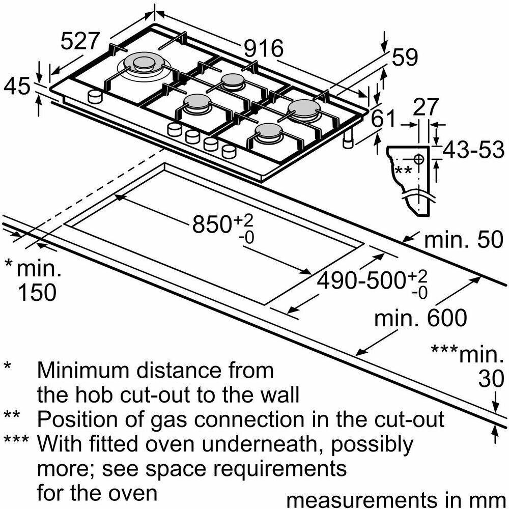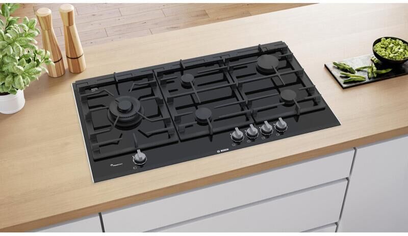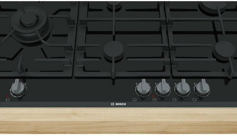 BOSCH Газовая варочная панель PRS9A6D70M, 5 конфорок, стеклокерамика, черный