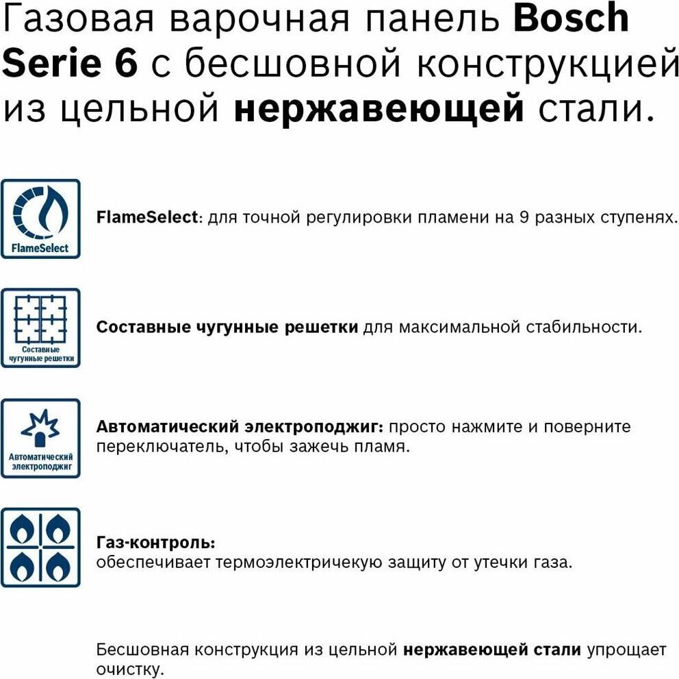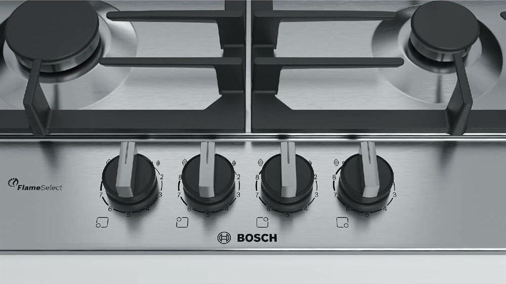 BOSCH Газовая варочная панель Serie 6 PCP6A5B90M, 4 конфорки, нержавеющая сталь, серый