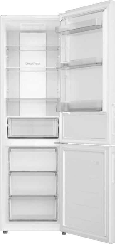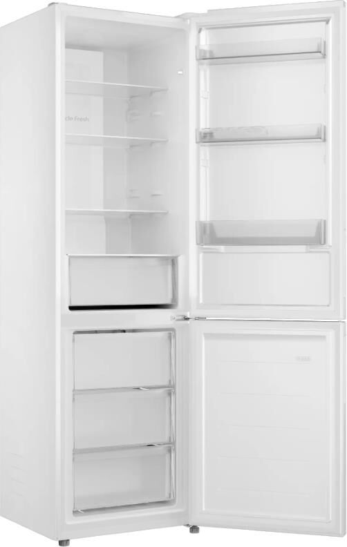 Отдельностоящий двухкамерный холодильник с нижним расположением морозильной камеры Общие данные: Размеры: высота: 200 см ширина: 59.5 см глубина: 59 см Общий объем/ Полезный объем: Холодильника (л): -/334 Холодильной камеры (л): -/243 Морозильной камеры (л): -/91 Тип управления: электронный Класс энергопотребления: A Климатический класс: SN-ST (от +10°С до +38°С) Количество компрессоров: 1 Годовое потребление энергии: 391 кВтч Цвет: белый Холодильное отделение: 4 полки из закаленного стекла 3 полки на двери Система No Frost (Frost Free, Ноу Фрост) Светодиодное освещение Функция суперохлаждения Ящик для овощей и фруктов Подставка для яиц Морозильное отделение: Система No Frost (Frost Free, Ноу Фрост) Мощность замораживания: 12 кг/сутки 3 ящика Форма для льда Дополнительная информация: Тип компрессора: Стандартный Вес нетто (кг): 64 Сигнал открытой двери Уровень шума дБ (А): 39 Тип хладагента: R600a Перенавешиваемые двери Сигнализация превышения температуры в морозильной камере
