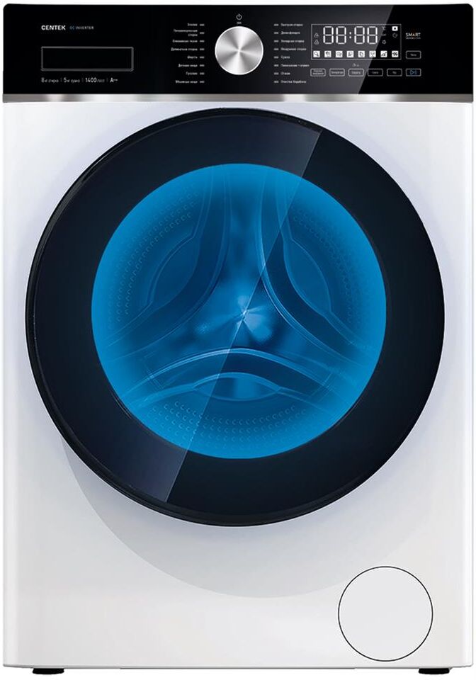 (ШхГхВ)60 х 43 х 84.7 см Макс. загрузка 8/5 кг (стирка/сушка) Макс. скорость отжима 1400 об/мин Объем барабана 54 л Класс А+++ Мощность 2000/1600 Вт (стирка/сушка) Кол-во режимов 17 Режимы Smart, Автоматическая балансировка белья, Без звука, Блокировка от детей, Обработка паром, Очистка барабана Управление Сенсорное Диаметр 480 мм (дверца) Вес нетто 60 кг Вес брутто 65 кг Уровень шума 62/69/76 дБ (стирка/сушка/отжим) Особенности Инверторная система, Подсветка внутренней камеры, Увеличенный объем камеры, Электронный регулятор устойчивости Класс защиты IPx4 Класс электробезопасности I Класс эффективности отжима А Потребление воды за цикл 48 л Энергопотребление за цикл 1,05/6,45 кВт/ч (стирка/стирка+сушка) Необходимое давление в водопроводе 0,03 – 1 МПа Функция "Сушка" Есть Функция "Пар" Есть Гарантия 3 года