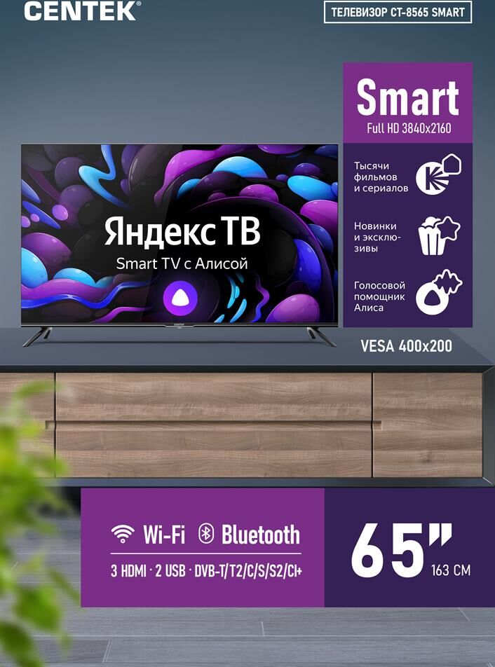 CENTEK CT-8565 SMART TV 4K Ultra HD безрамочный