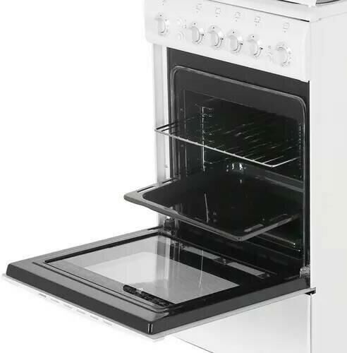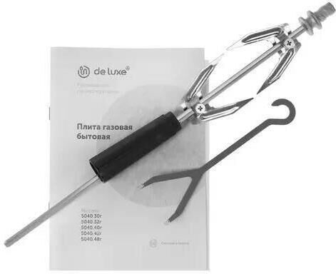Система "газ-контроль" рабочего стола ,эл.розжиг раб.стола и духовки, Чугунные решетки рабочего стола, подсветка, мех.таймер,термометр, Электродвигатель с вертелом, выдвижной хозяйственный, стеклянная крышка раб.стола, объем духовки 54 л, регулировочные