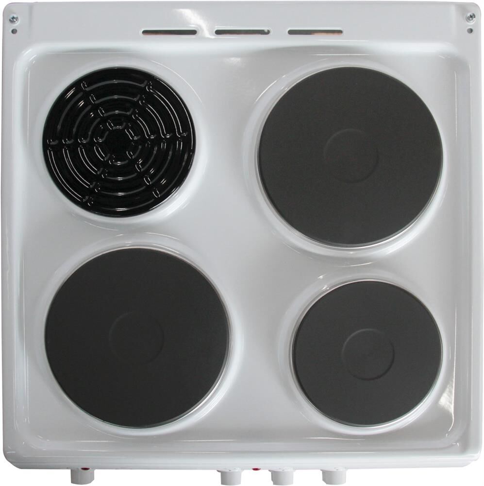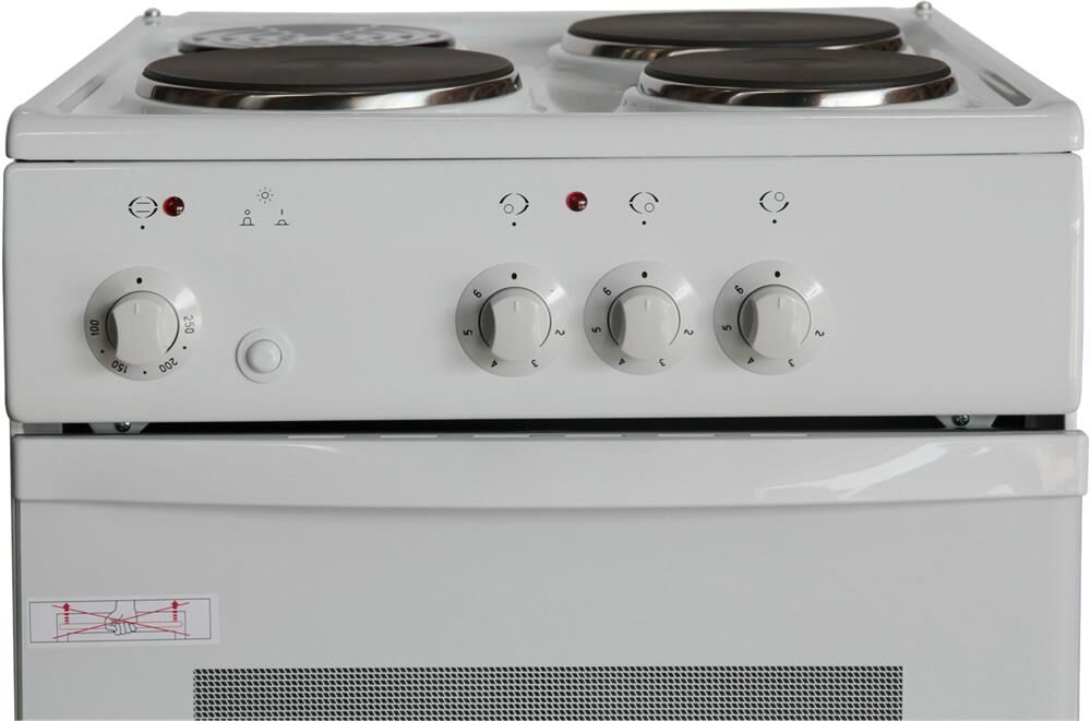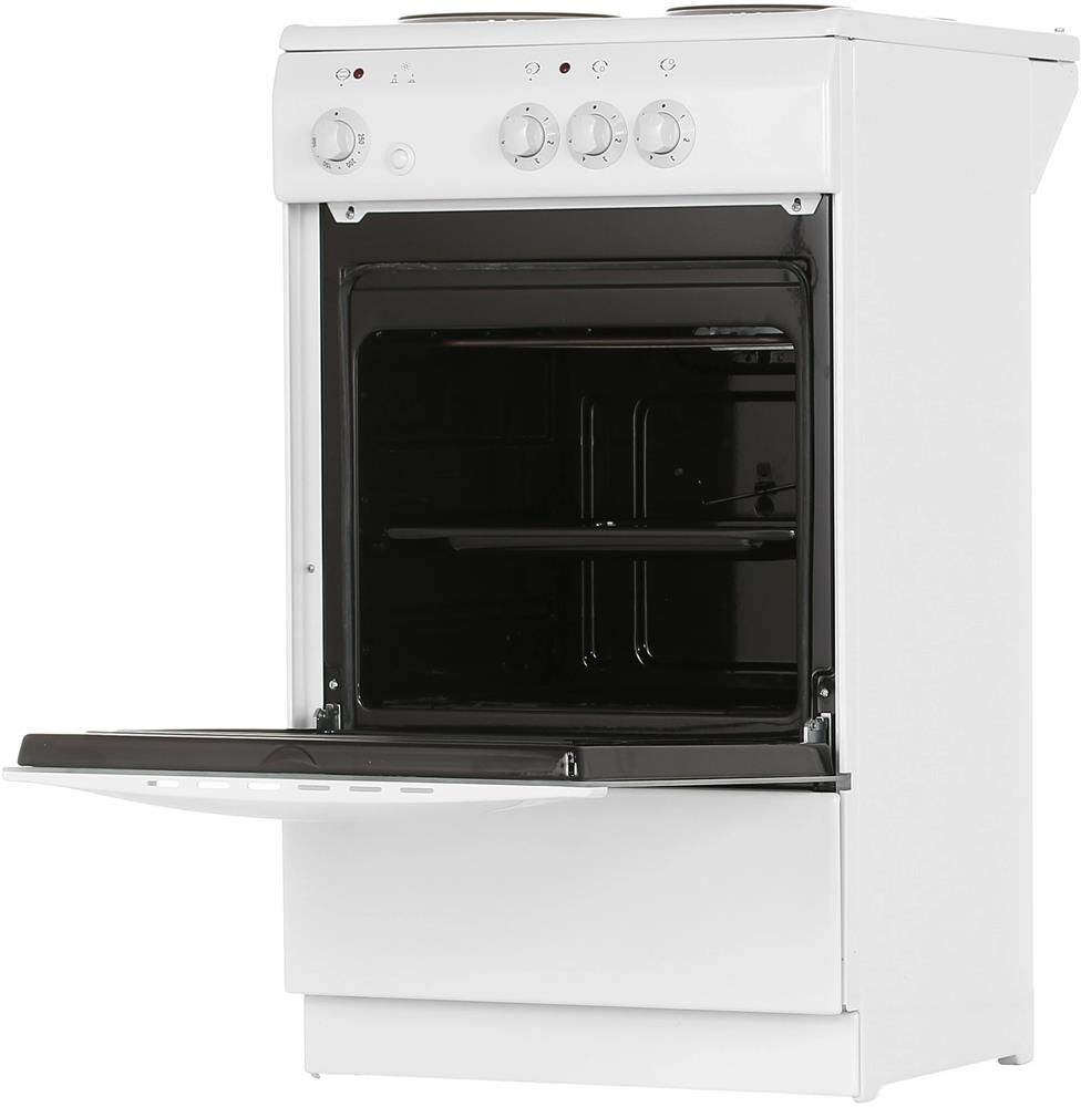 Габариты 850/500/500 Вес, кг — 36 Объём духовки 43 л. Основные характеристики варочной поверхности: 3 электрические конфорки 1,0/1,5/1,5 кВт Основные характеристики духового шкафа: Терморегулятор Комплектация: Большой противень Малый противень Решётка для жарки Хозяйственный отсек Техническое описание: Цвет — белая