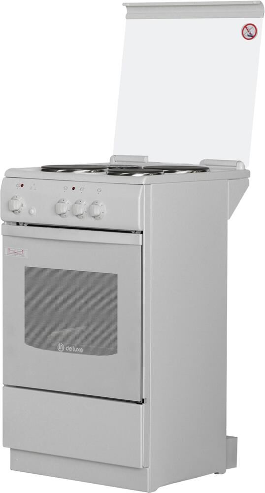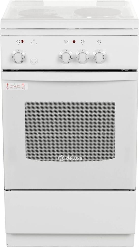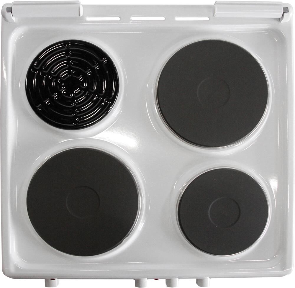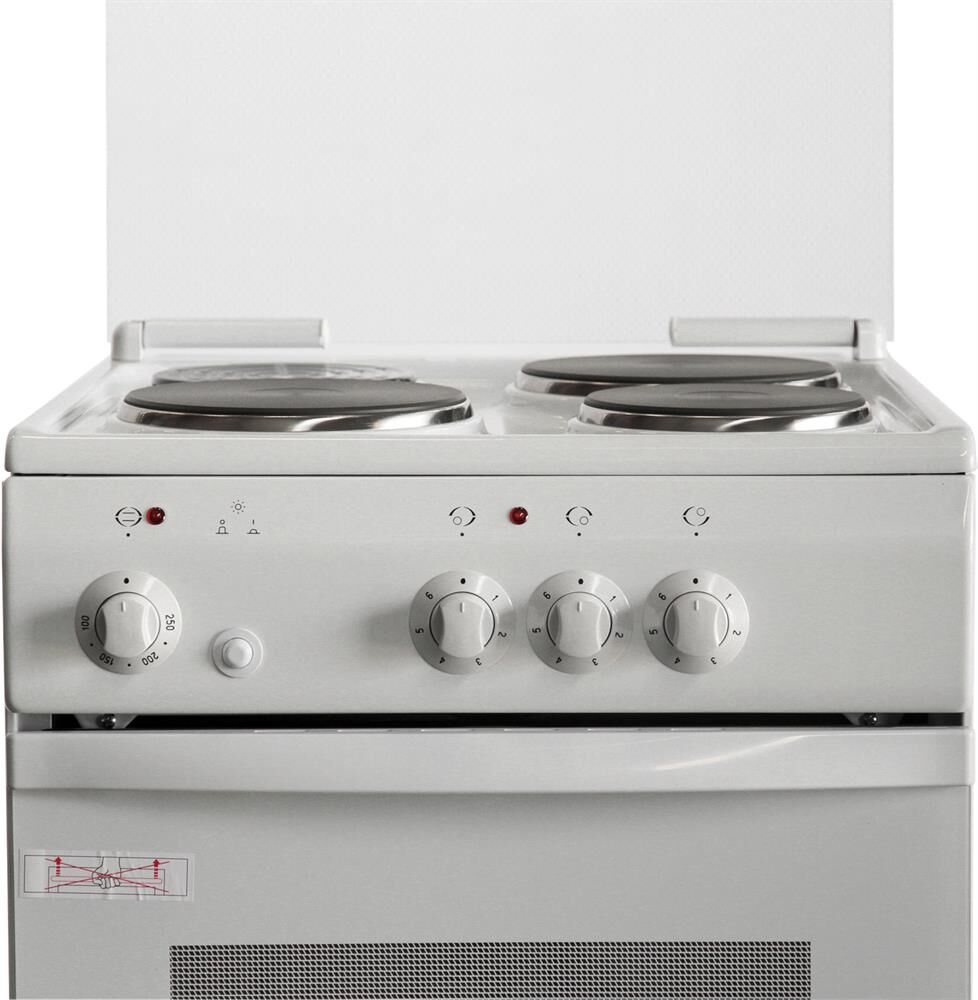 Габариты 850*500*500 Вес, кг — 38 Объём духовки 43 л. Основные характеристики варочной поверхности: 3 электрические конфорки 1,0/1,5/1,5 кВт Основные характеристики духового шкафа: Терморегулятор Комплектация: Большой противень Малый противень Решётка для жарки Стеклянная крышка рабочего стола Хозяйственный отсек Техническое описание: Цвет — белая