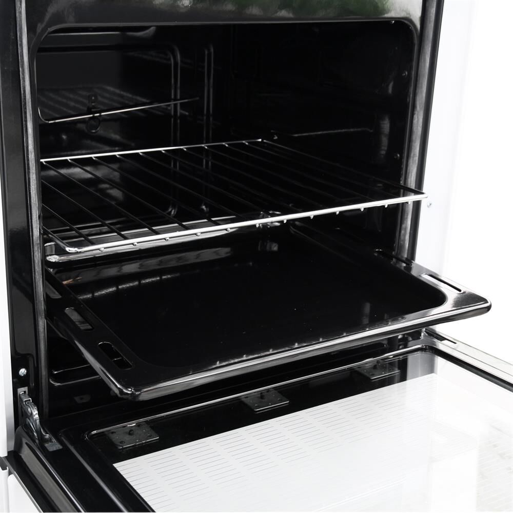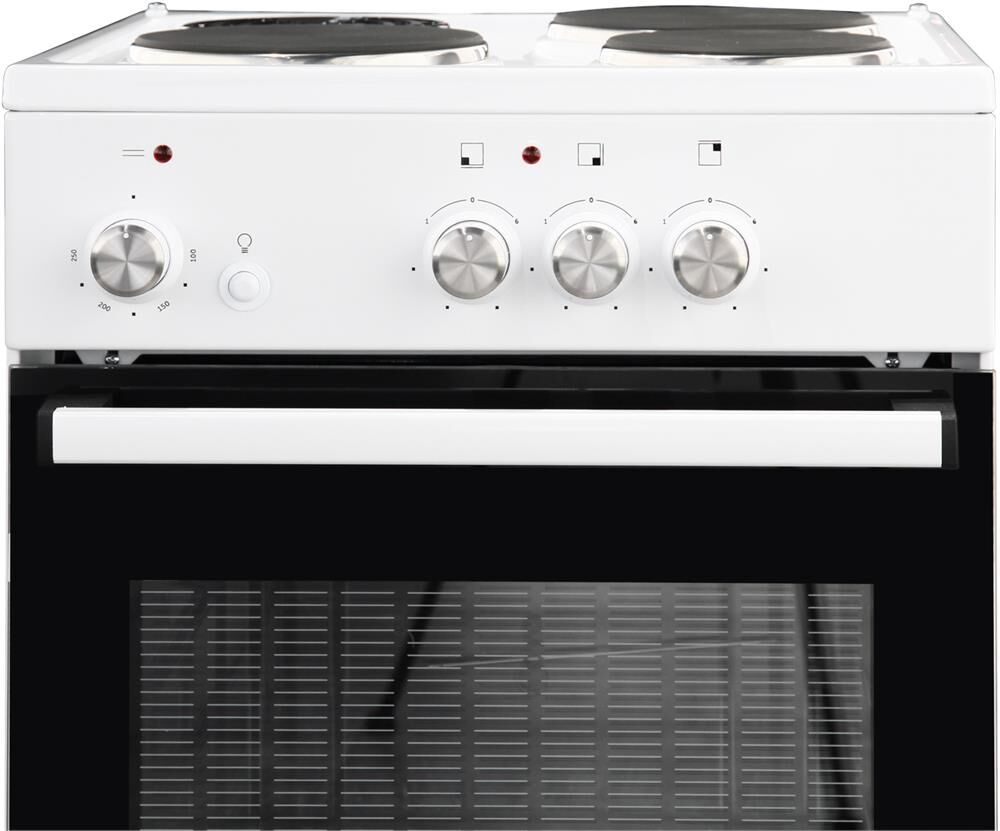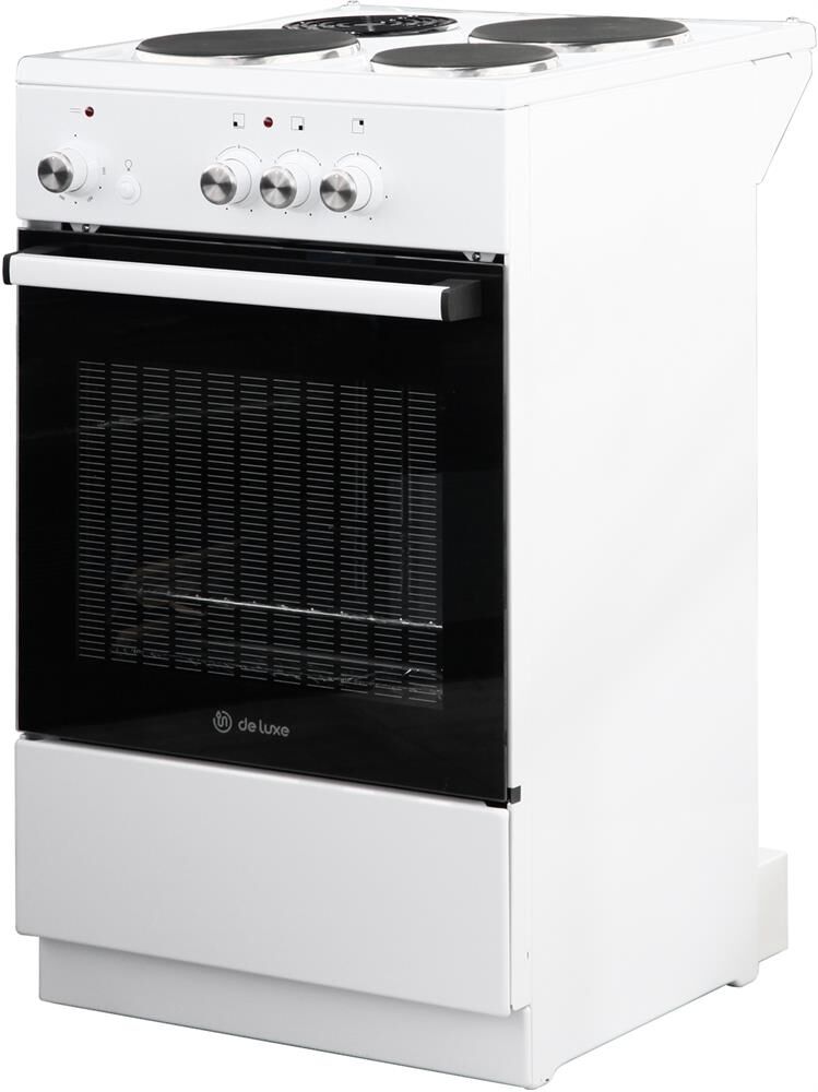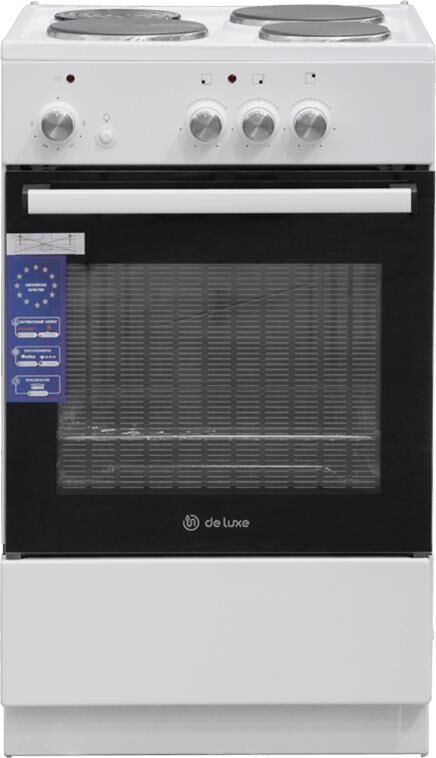 Размеры, мм — высота/ширина/глубина – 850/500/500 * Цвет — белый * 3 электрические конфорки 1,0/1,5/1,5 кВт * Объём духовки 43 л. * Комплектация: Большой противень Малый противень Решётка для жарки Хозяйственный отсек