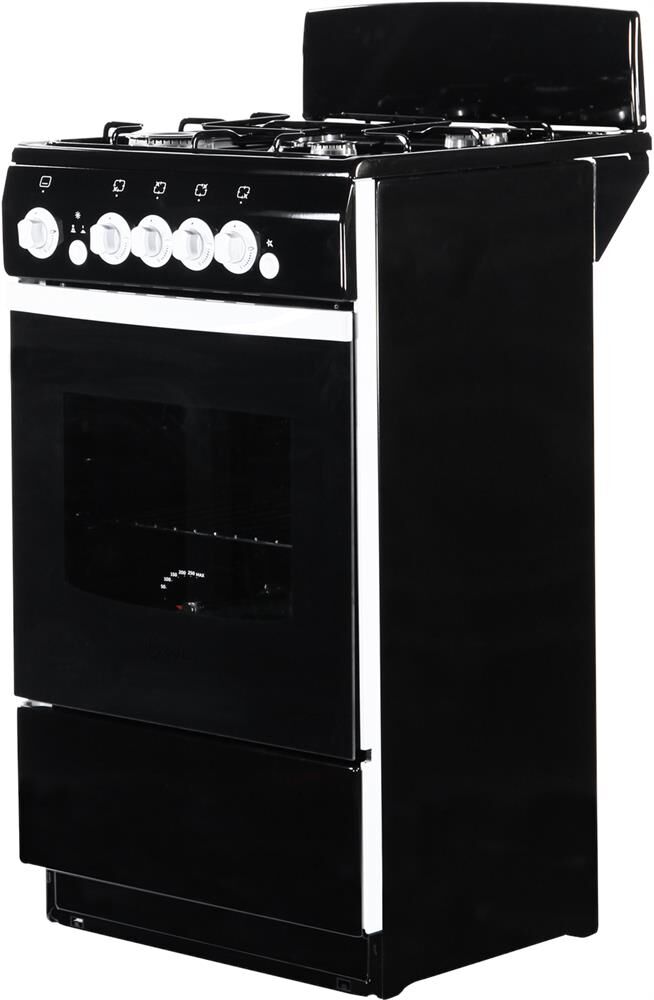 Габариты 850*500*500 Вес, кг — 34 Основные характеристики варочной поверхности: Электророзжиг 4 газовые конфорки 1,0/1,75/1,75/3,0 кВт Основные характеристики духового шкафа: Газ-контроль Освещение Объём духовки 43 л. Комплектация: Противень Решётка для жарки Эмалированная решётка Металлический щиток рабочего стола Хозяйственный отсек Техническое описание: Цвет — черный