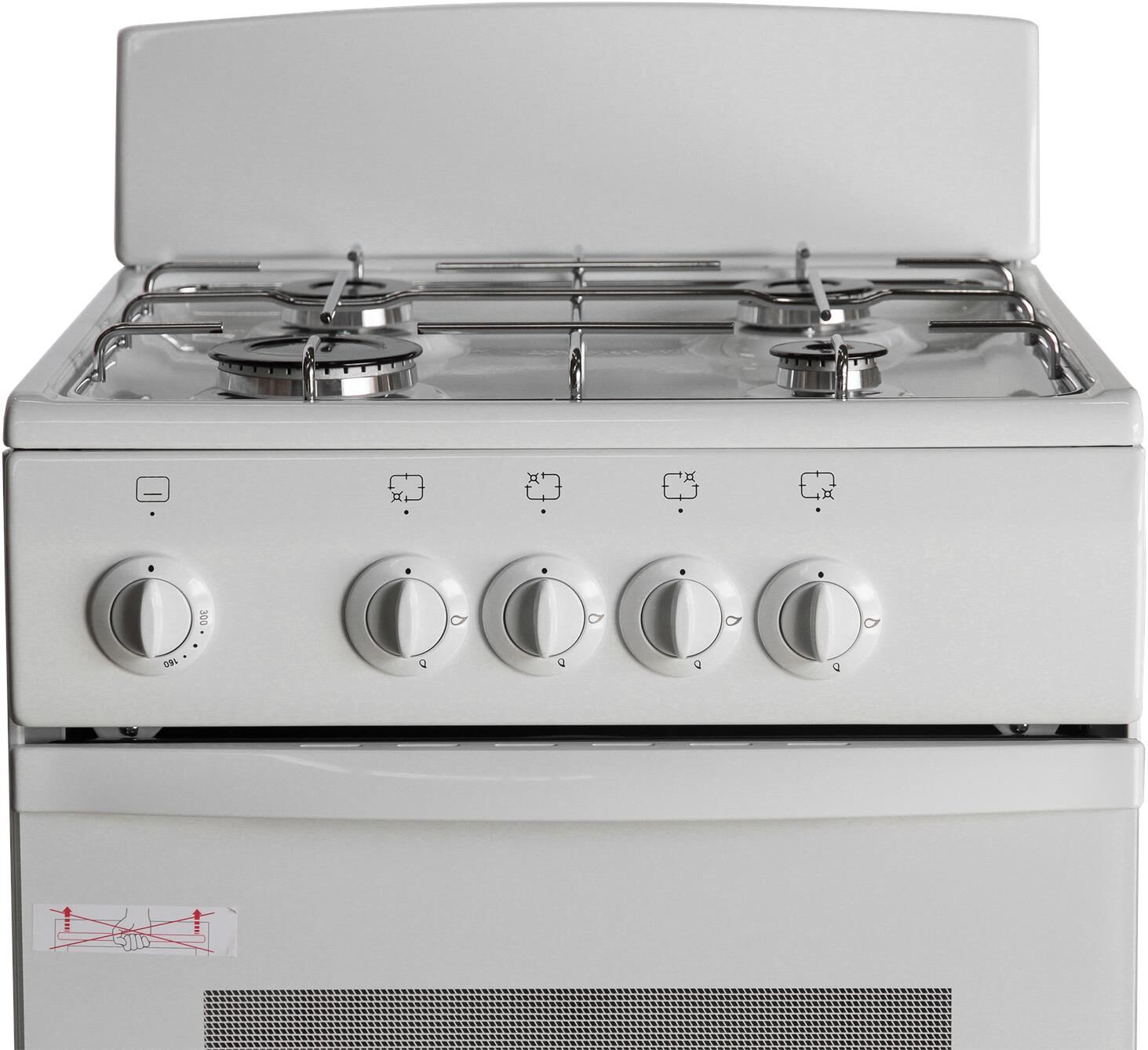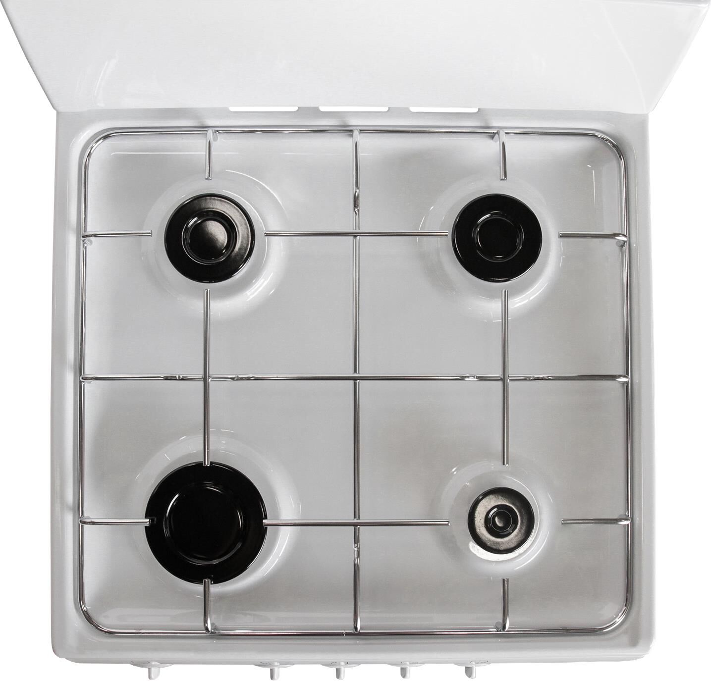 Габариты 850*500*500 Вес, кг — 32 Основные характеристики варочной поверхности: 4 газовые конфорки 1,0/1,75/1,75/3,0 кВт Основные характеристики духового шкафа: Газ-контроль Объём духовки 43 л. Комплектация: Малый противень Металлический щиток рабочего стола Хозяйственный отсек Никелированная решётка рабочего стола Техническое описание: Цвет — белый