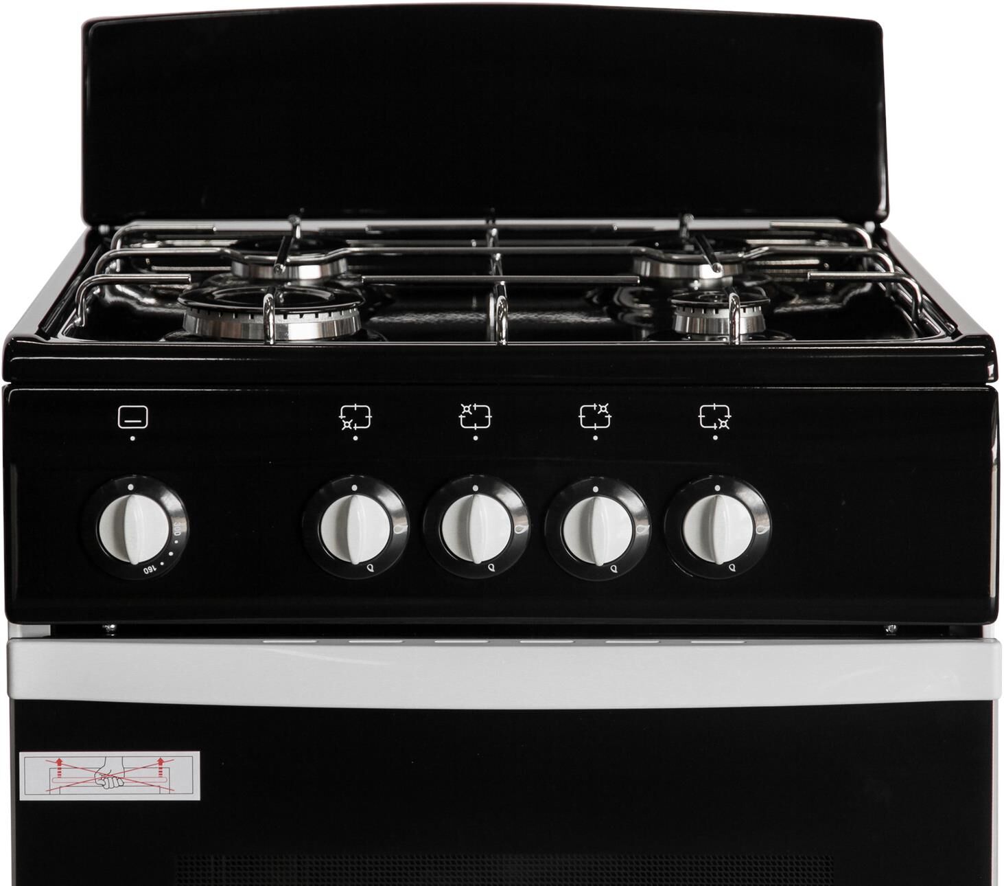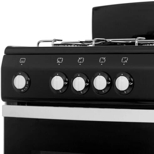 Габариты 850*500*500 Вес, кг — 32 Основные характеристики варочной поверхности: 4 газовые конфорки 1,0/1,75/1,75/3,0 кВт Основные характеристики духового шкафа: Газ-контроль Объём духовки 43 л. Комплектация: Малый противень Металлический щиток рабочего стола Хозяйственный отсек Никелированная решётка рабочего стола Техническое описание: Цвет — черный