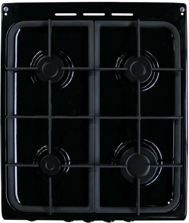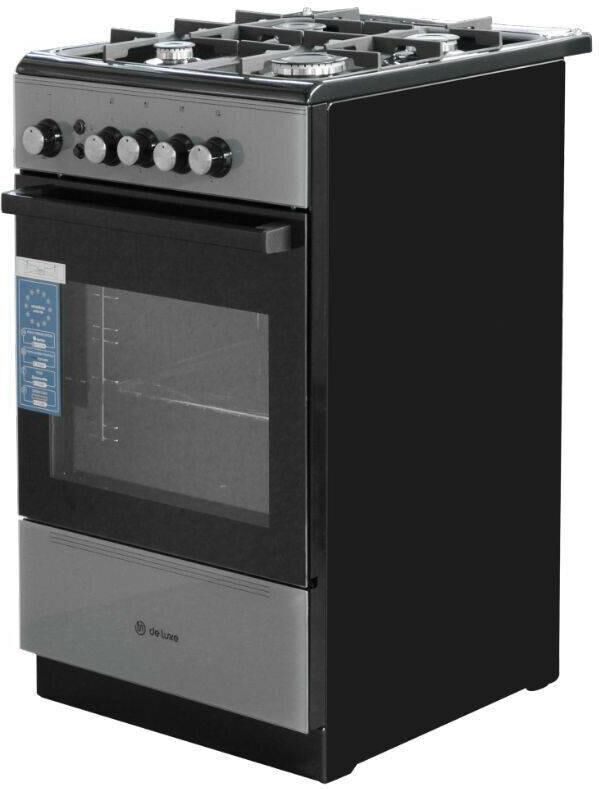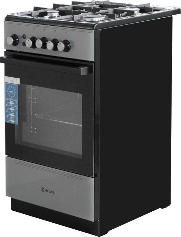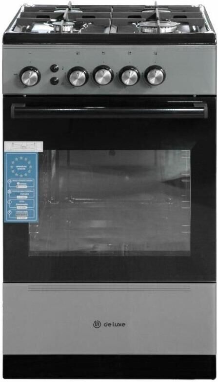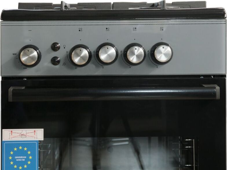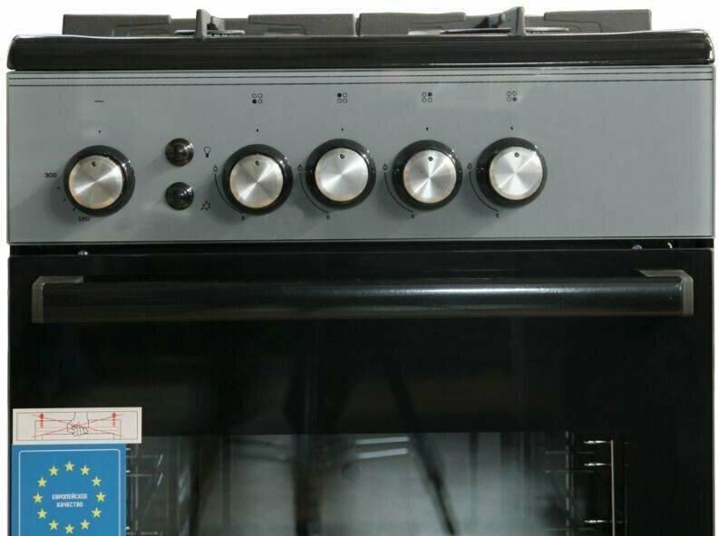 Размеры, мм — высота/ширина/глубина – 850/500/600 * Цвет — серый, стеклянный фасад *Основные характеристики варочной поверхности: 4 газовые конфорки 1,0/1,75/1,75/3,0 кВт. Электророзжик раб.стола * Основные характеристики духового шкафа: Горелка основная 2,5 кВт с УКП. Газ-контроль. Объём духовки 54 л. * Чугунная решётка * Хозяйственный отсек *