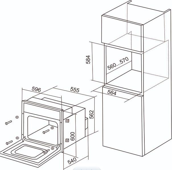 Размер, мм — высота/ширина/глубина– 595/595/600 * Фасад — черное матовое стекло * Ручки цвет "бронза" * Объем духовки 58л. * Класс энергопотребления А+ * Поворотные переключатели, 6 режимов приготовления, Система охлаждения духовки, Конвекционный Гриль, Разморозка, Внутренняя подсветка, Механический таймер, Съемные направляющие для противней * Вес, кг — 33 *