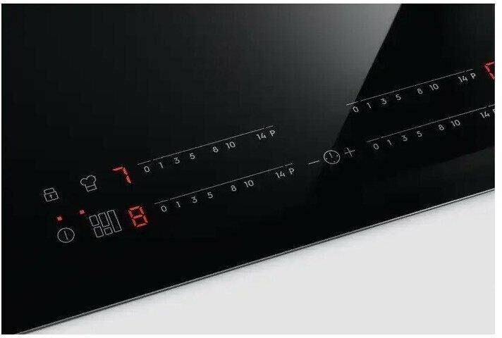 Установка рабочей поверхности: независимая. Материал рабочей поверхности: стеклокерамика. Количество индукционных конфорок: 4. Количество конфорок быстрого нагрева: 4. Управление: электронное. Тип таймера: электронный. Дисплей: есть. Мощность подключения: 7.2. Тип: индукционная. Расположение панели управления: спереди. Длина сетевого шнура: 1.5. Цвет рамки: серебристый. Общее количество конфорок: 4. Габариты упаковки (ед) ДхШхВ: 0.6×0.675×0.12. Вес упаковки (ед): 8.7. Гарантия: 12 мес.. Левая дальняя конфорка: мощность 1.8/2.8 кВт, размер 180 мм. Правая дальняя конфорка: мощность 1.8/2.8 кВт, размер 180 мм. Левая ближняя конфорка: мощность 2.3/3.7 кВт, размер 210 мм. Правая ближняя конфорка: мощность 1.4/2.5 кВт, размер 145 мм. Цвет: черный. Размеры ниши для встраивания (ШхГxВ): 560x490x60 мм. Размеры(ШхГхВ): 576х516х46 мм. Безопасность: блокировка управления (защита от детей), защитное отключение, распознавание наличия посуды. Тип переключателей: сенсорные. Таймер: с автоотключением. Тип конфорок: индукционн
