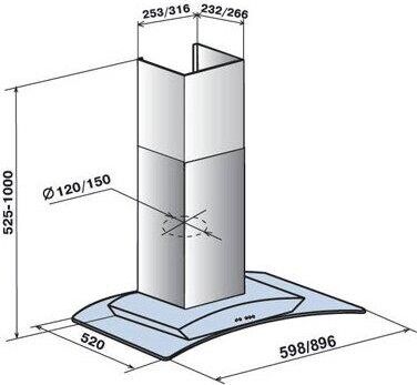 АВС — C; Производительность куб. м/ч — 650; Тип — каминная; Тип управления — кнопки; Цвет — нержавеющая сталь; Ширина см. — 90;