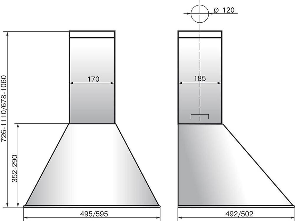 Установка: Каминная/ пристенная Габариты (ШхГхВ) см: 59х50х70 Режим работы: Отвод/циркуляция Производительность: 430 куб. м/ч Количество скоростей: 3 Потребляемая мощность (макс): 2х40 Вт.