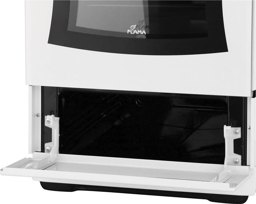 Ширина электрической плиты Flama АЕ14010 всего 50,5 см, поэтому она станет удачным решением для небольшой кухни. Объем духовки 50 л. Стекло дверцы духовки 2-слойное. Тип очистки традиционный. Режимы работы духовки 4. Максимальная температура 280 *С. Тип конфорок чугун. Тип освещения лампа накаливания. Тип управления механический. Материал варочной поверхности метал. Внутреннее покрытие эмаль. Утапливаемые ручки управления. Ящик для посуды откидной. Габаритные размеры (В*Ш*Г) 85.5*50.5*54.5 см. Класс энергоэффективности C. Потребляемая мощность 7000 Вт. Вес 32,6кг. Цвет белый.