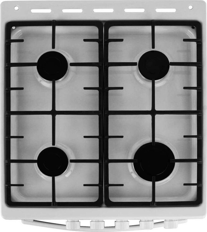 Габаритные размеры (В*Ш*Г) 85*50*60 см * Цвет белый * Духовка газовая * Рабочий стол накрывается практичной стеклянной крышкой, которая легко очищается от жира и копоти. Съемная дверца. Быстрый разогрев духовки. Противень ProCook Объем духовки 50 л. Стекло дверцы духовки 2-слойное. Максимальная температура 270 *С. Тип конфорок газовые 4 шт. Электроподжиг конфорок автоматический. Газконтроль духовки. Тип освещения лампа накаливания. Тип управления механический. Внутреннее покрытие эмалированная сталь. Решетка чугунная. Крышка варочной поверхности стеклянная. Ящик для посуды откидной. Металлическая решетка. Вес 35 кг.
