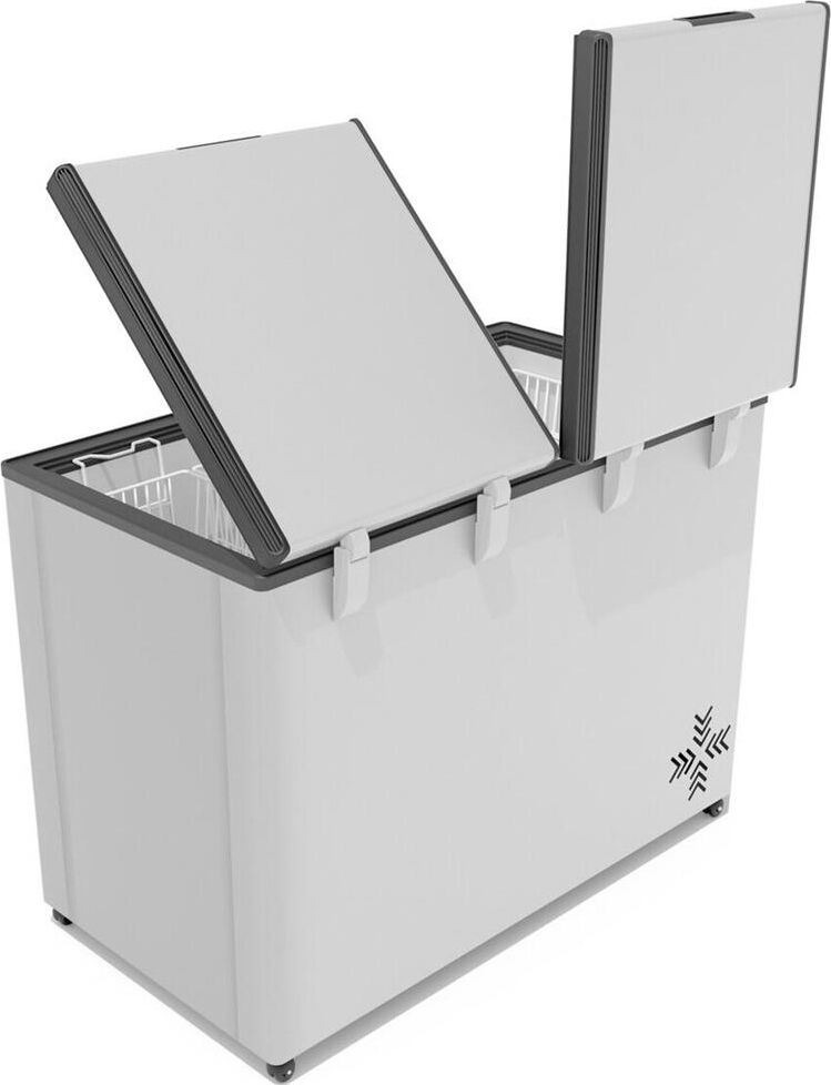 Серия STANDART DOUBLE. Удобный большой ларь с двойной глухой металлической крышкой. Размеры (ДхШхВ), 120х60х84см. Объем (л) 380. Двойная крышка обеспечивает простой доступ к нужной части ларя, сокращая потребление электроэнергии на поддержание температуры. Внутри морозильный ларь не разделен, что позволяет удобно хранить крупные и мелкие продукты. Темп.Режим -18…-22. 1 корзина, колеса. Максимальная температура окружающей среды, C до +30.