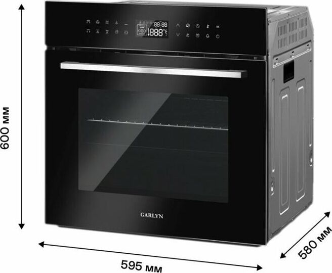 Шкаф духовой встраиваемый Garlyn GBO-1000 — электрический духовой шкаф в стильном и функциональном исполнении 10 режимов работы, широкий диапазон температуры нагрева, встроенный таймер, функция отложенного старта и многое другое для приготовления ароматных и сочных блюд. Тип – встраиваемая, Материал корпуса металл, стекло, Объём – 68 литров, Управление – электронное сенсорное, Максимальная температура нагрева – 250°С, Минимальная температура нагрева – 50°С, Гриль – есть, электрический, Конвекция – есть, Тип очистки – каталитические панели, очистка паром, Количество режимов работы – 10, Отображение времени – есть, Отсрочка старта – есть. Габариты ниши — 570 × 590 × 565 мм.