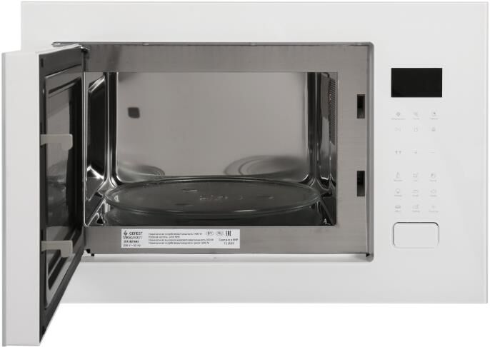 Габариты ВхШхГ, см: 39х59,5х38,2; Полезный объём, л.: 25; Тип подключения: Электрический; LED -дисплей; Таймер; Цвет модели: Белый; Материал панели управления: Стекло; Внутреннее покрытие камеры: Нержавеющая сталь; Открытие двери: Кнопочное; Фасад: Стеклянный; Автоматические программы приготовления: 8; Гриль в микроволновой печи: Кварцевый; Количество уровней мощности: 5; Мощность микроволн, Вт.: 900; Роликовая подставка: 1; Стеклянная тарелка: 1; Решётка для гриля: 1; Функция "Блокировка от детей"