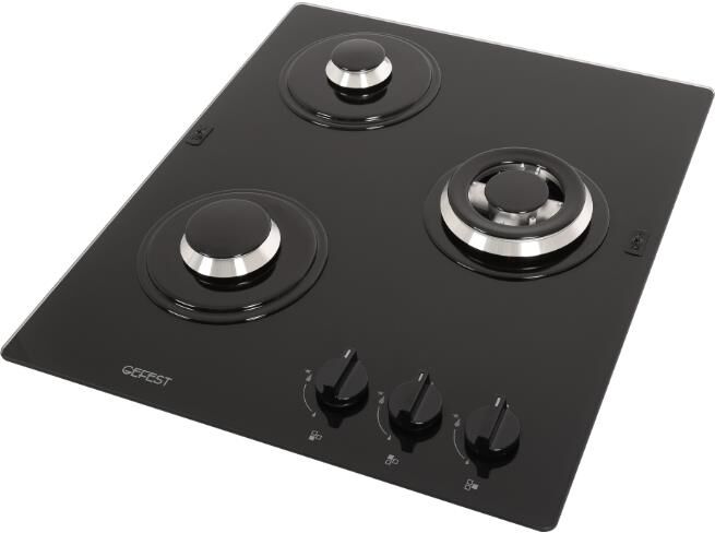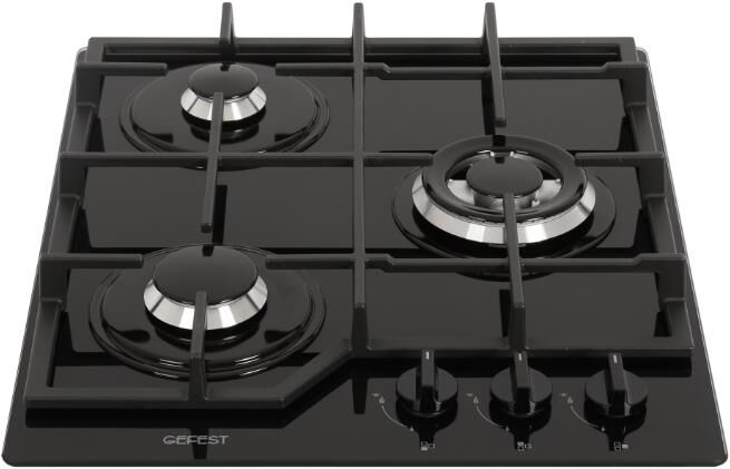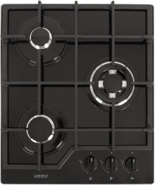 Габариты ВхШхГ, см: 10х45х52,5; Размеры монтажного проема, ШхГ, см: 40,6 х 48,6; Тип подключения: Газовый; Количество зон приготовления: 3; Цвет модели: Черный; Материал варочной поверхности: Стекло; Материал решеток варочной поверхности: Чугун; Двухзонная горелка варочной поверхности; Газ-контроль горелок стола; Электророзжиг горелок стола: Розжиг встроен в ручки; Управление конфорками стола: Механическое; Диапазон номинального напряжения сети, В: 220-230; Номинальная частота сети, Гц: 50