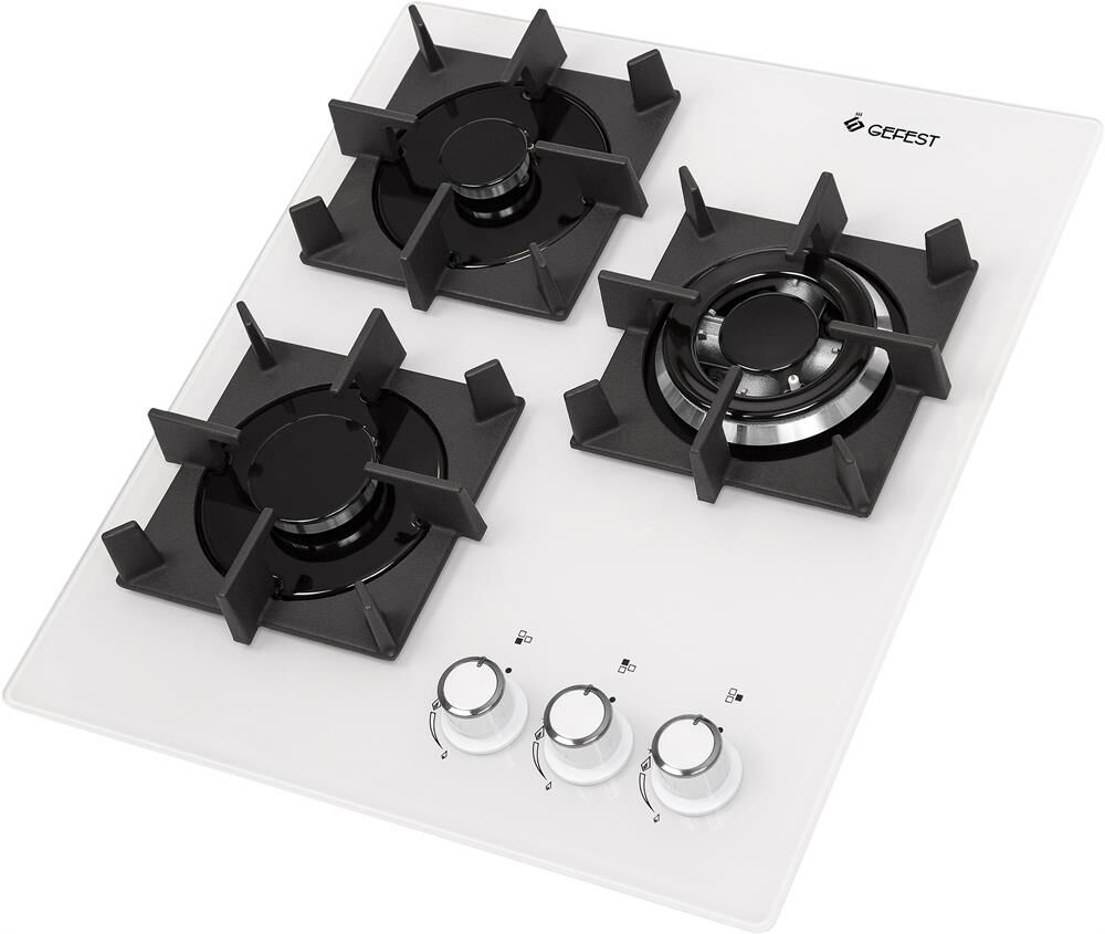 Габариты ШхГхВ: 45х52.5х10 см Тип: газовая Количество зон приготовления: 3 Варочная поверхность: стеклянная Масса нетто, кг: 10 Масса брутто, кг: 11 Диапазон номинальных напряжений, В: 220-230 Присоединительная резьба газопровода: G 1/2-В Сетевой шнур и вилка: в наличии Класс электробезопасности: I Газ-контроль горелок столаЧугунные решетки горелок столаДвухзонная горелкаЭлектророзжиг горелок, встроенный в ручкиФиксированное положение «малое пламя» Цвет: белый