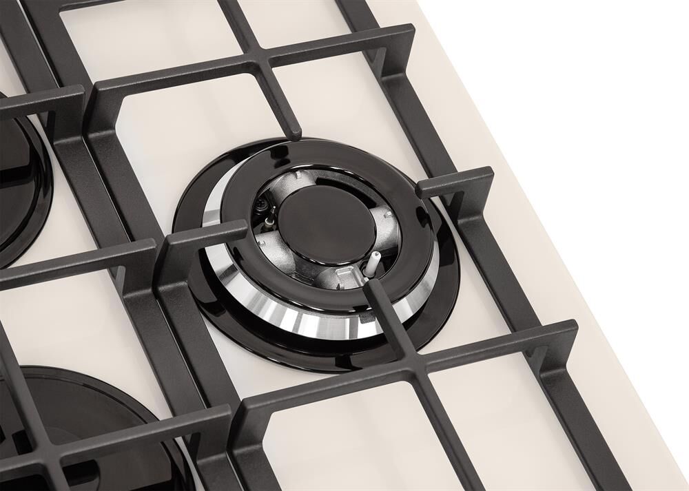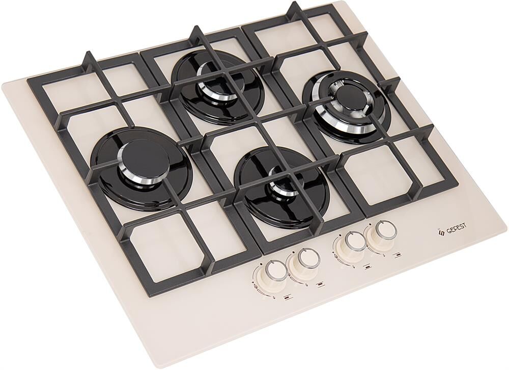Габаритные размеры ШхГхВ: 67х52.5х10 см * Цвет: кремовый. Варочная поверхность: стеклянная * Газ-контроль горелок стола * Чугунные решетки горелок стола * Двухзонная горелка * Электророзжиг горелок, встроенный в ручки * Фиксированное положение «малое пламя» *