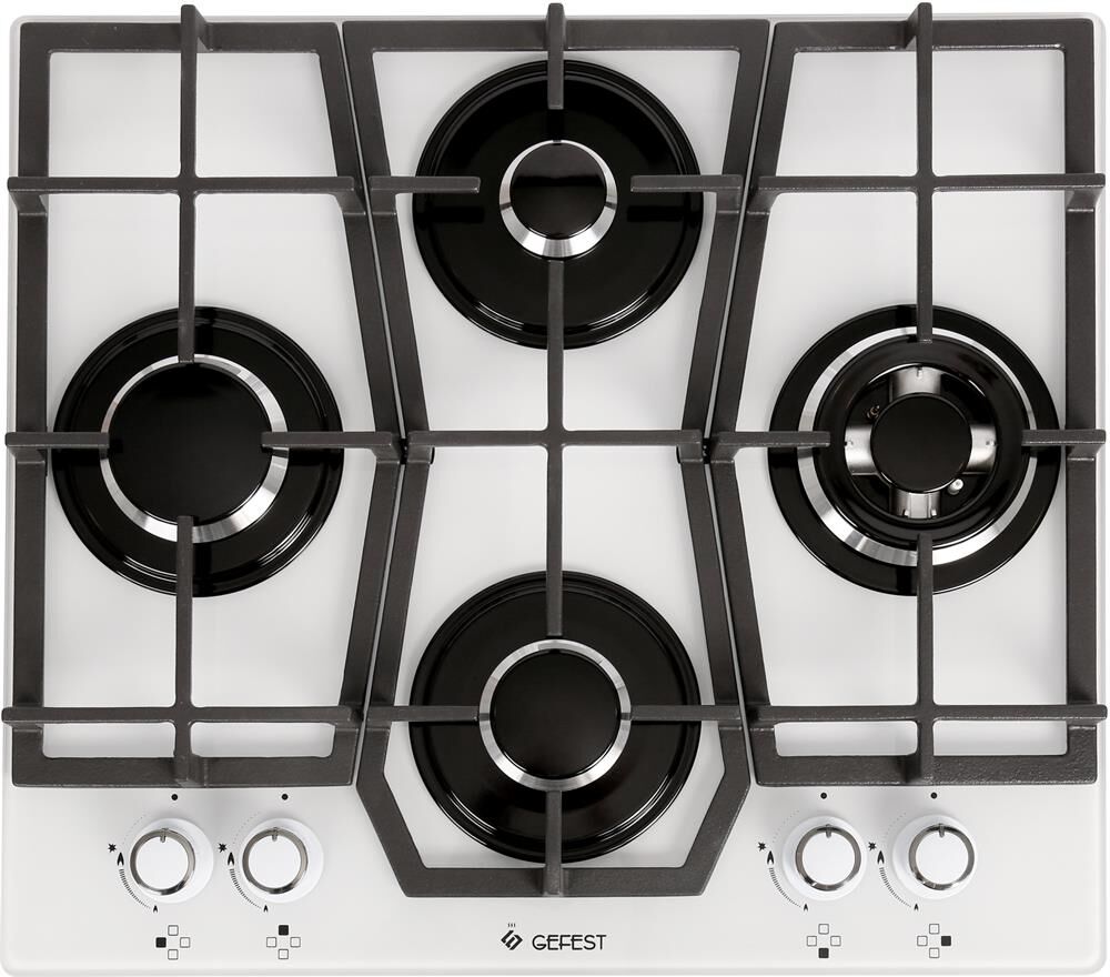 Размеры монтажного проема, ШхГ, см 55,4 х 48,6. Ширина, см 60. Глубина, см 52,5. Высота, см 10 * Тип подключения Газ * Количество зон приготовления 4 * Цвет модели Белый * Материал варочной поверхности Стекло * Материал решеток варочной поверхности Чугун * Газ-контроль горелок стола * Электророзжиг горелок стола строен в ручки * Двухзонная горелка варочной поверхности *