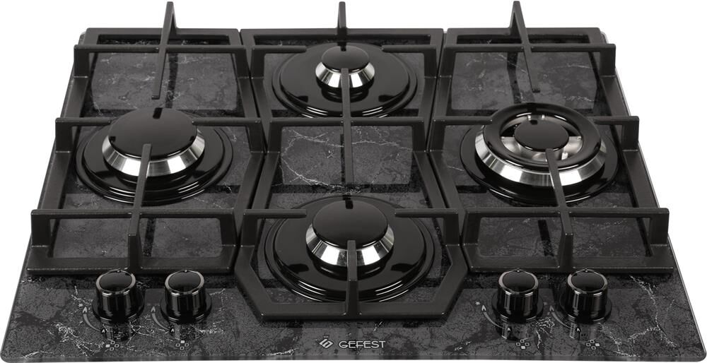 Размеры монтажного проема, ШхГ, см 55,4 х 48,6/ Ширина, см 60/ Глубина, см 52,5/ Высота, см 10/ Цвет модели Черный/ Дизайн Мрамор/ Материал варочной поверхности Стекло/ Материал решеток варочной поверхности Чугун/ Газ-контроль горелок стола/ Электророзжиг горелок стола Розжиг встроен в ручки/ Двухзонная горелка варочной поверхности