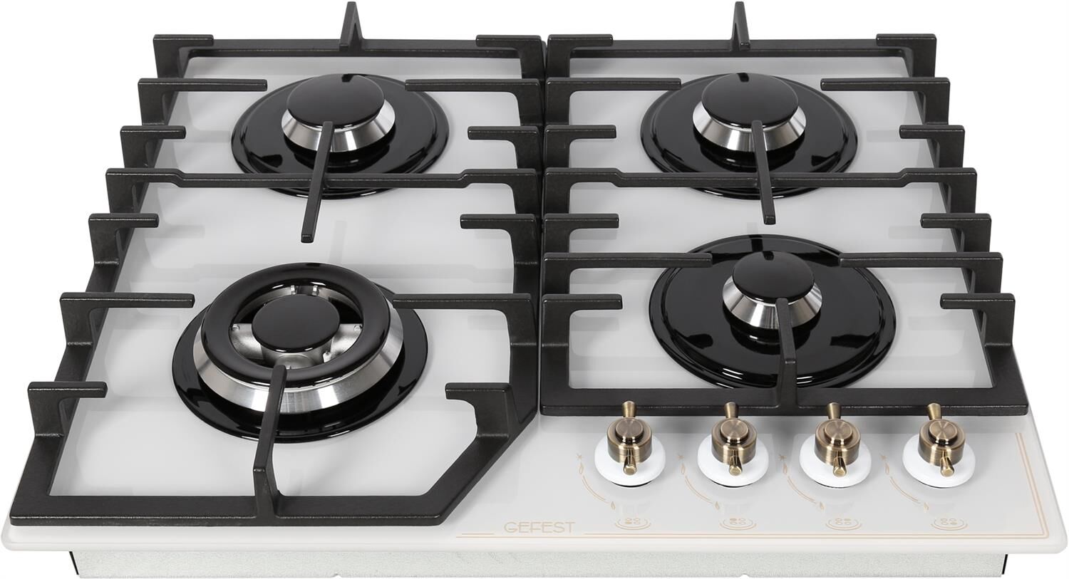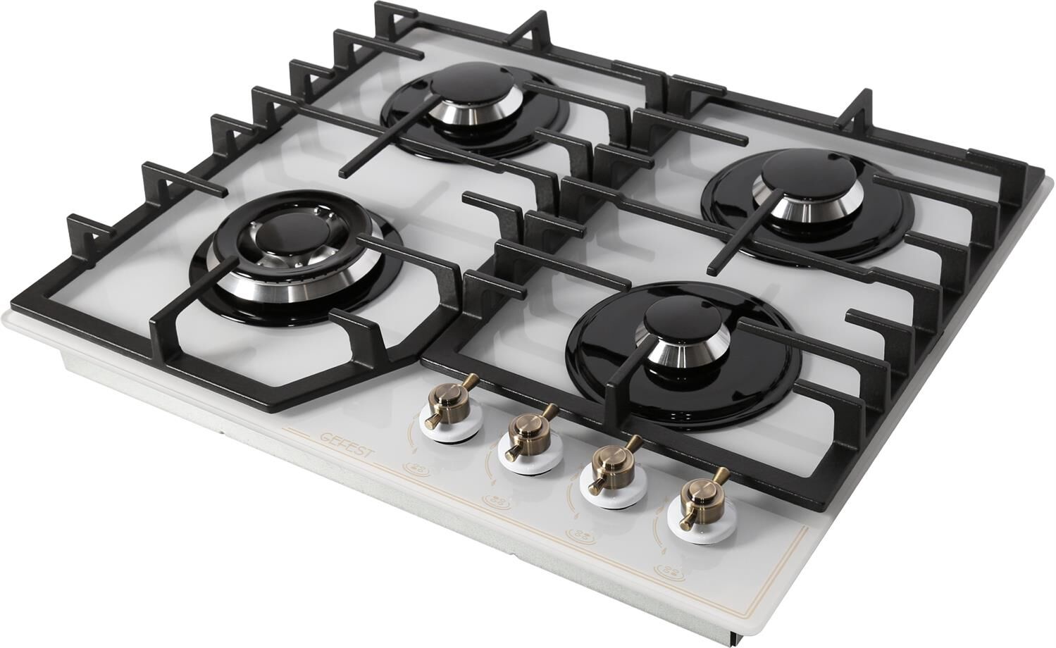 Размеры монтажного проема, ШхГ, см: 55,4 х 48,6; Ширина, см: 60; Глубина, см 52,5; Высота, см: 10; Вес: 13,5 кг; Всего конфорок на варочной панели: 4; Тип подключения: Газовый; Материал рабочей поверхности: Стекло; Решетка: Чугун; Механическое управление; Электроподжиг автоматический; Поворотные переключатели; Газ-контроль конфорок; Тип подключения: Газовый; Газ-контроль горелок стола; Электропджиг горелок стола встроен в ручки