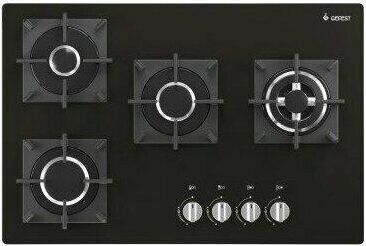 Габаритные размеры ШхГхВ: 75х50х10 см * Цвет: черный. Варочная поверхность: стеклянная * Газ-контроль горелок стола * Чугунные решетки горелок стола * Двухзонная горелка * Электророзжиг горелок, встроенный в ручки * Фиксированное положение «малое пламя» *