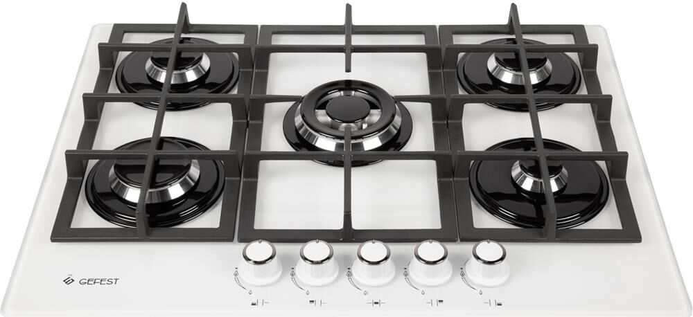 Панель варочная газовая. Цвет: белый. Габаритные размеры ШхГхВ: 70х52.5х10 см, монтаж в корпус 600 мм. Варочная поверхность: стеклянная. Газ-контроль горелок стола. Чугунные решетки горелок стола. Двухзонная горелка. Электророзжиг горелок, встроенный в ручки. Фиксированное положение «малое пламя». Класс электробезопасности: I