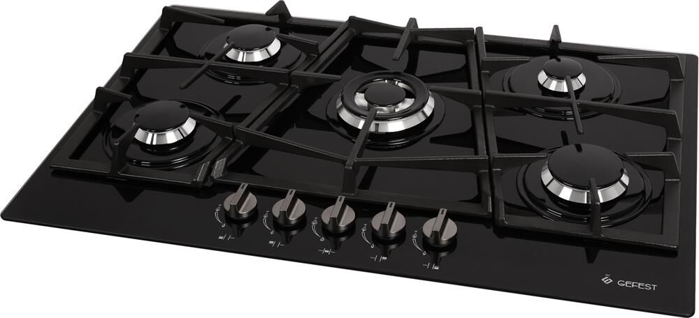 Размеры монтажного проема, ШхГ, см 76 х 48,6. Ширина, см 80. Глубина, см 52,5. Высота, см 10. Количество зон приготовления 5. Цвет модели Черный. Материал варочной поверхности Стекло. Материал решеток варочной поверхности Чугун. Газ-контроль горелок стола. Электророзжиг горелок стола встроен в ручки. Двухзонная горелка варочной поверхности. Управление конфорками стола Механическое. "Фиксированное положение ""малое пламя"".